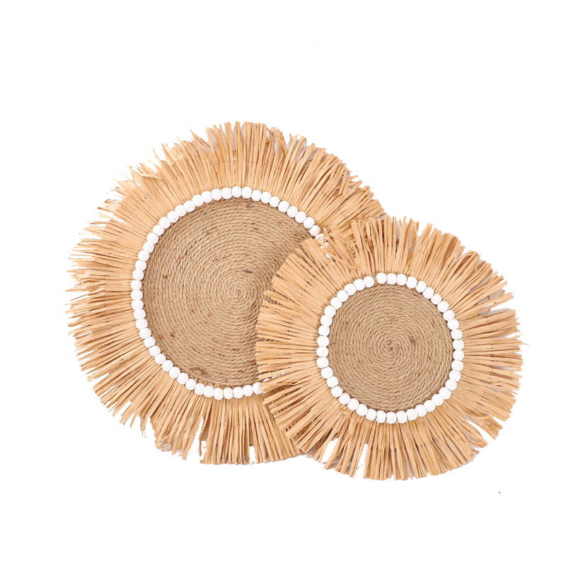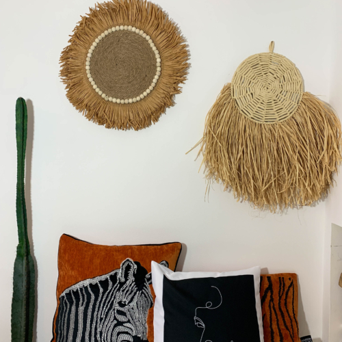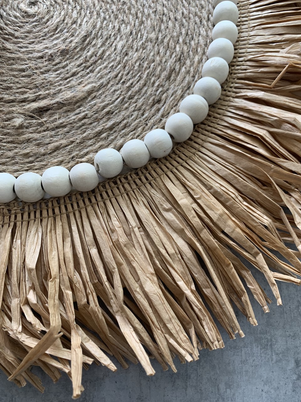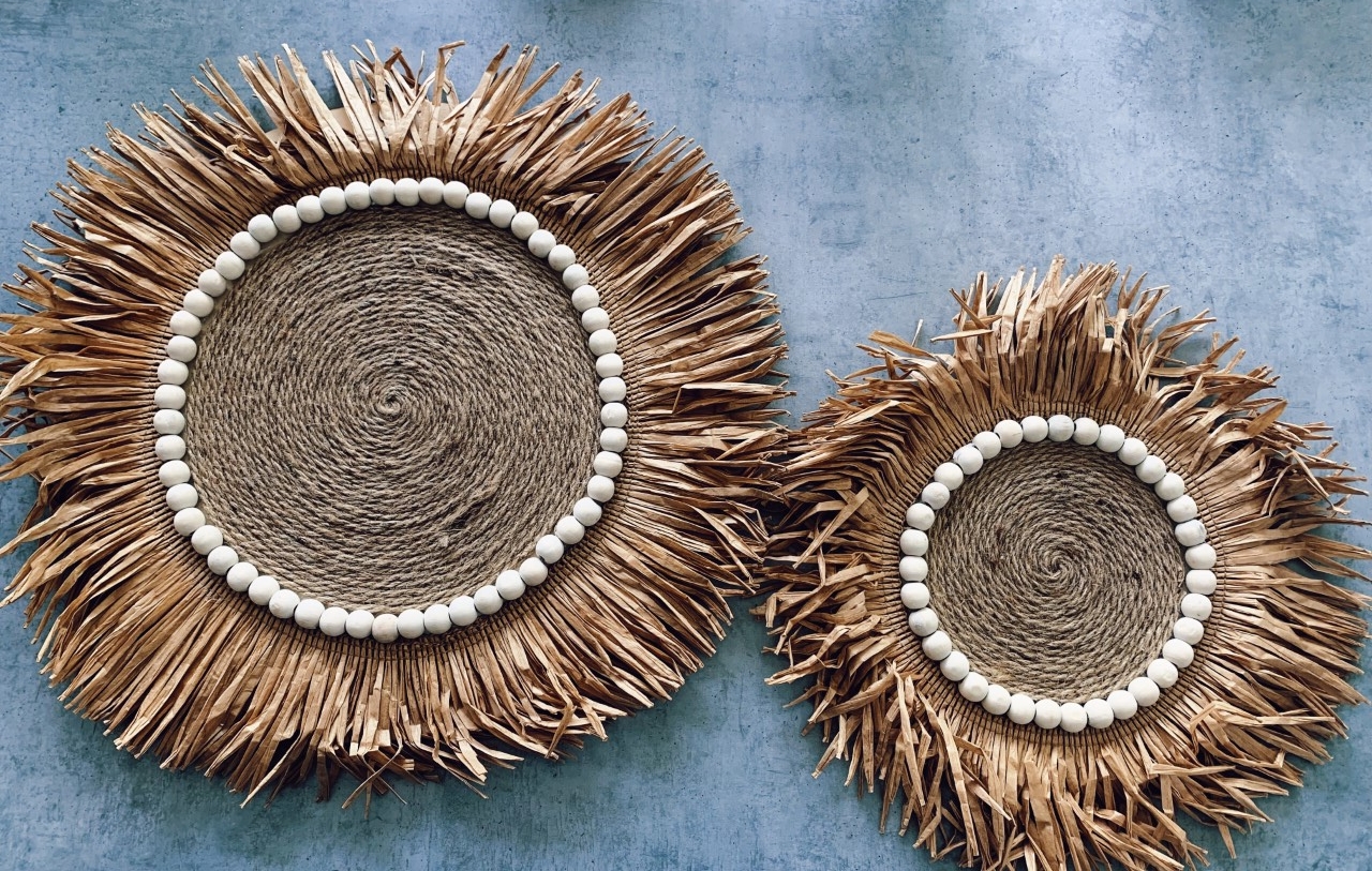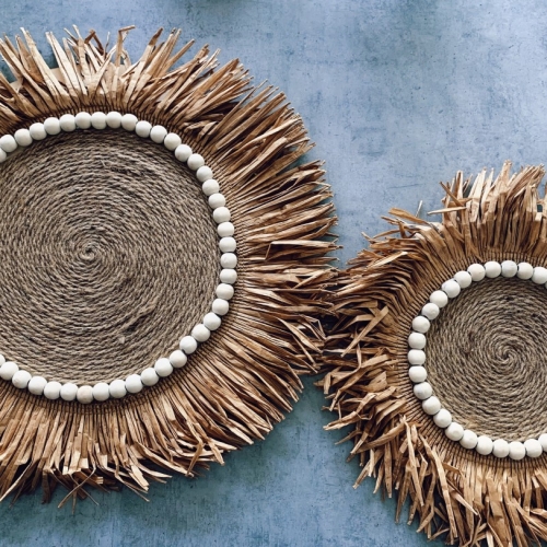 This is a beautiful set of 2 pieces grass wall decoration. The sizes of these handmade round plates are 33 and 44 cm.