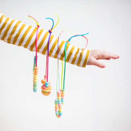 corn syrup, wheat flour, sugar, cornstarch, and in smaller amounts palm oil, salt, artificial flavor, glycerin, citric acid, potassium sorbate, Red 40, and soy lecithin.
