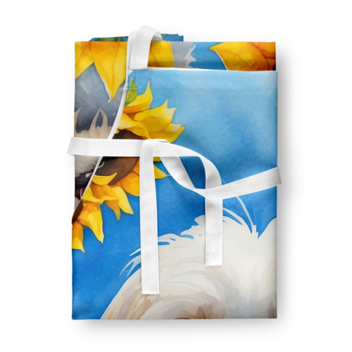 Apron featuring breed specific Maltese artwork. Elevate your cooking, baking, and grilling experiences with our versatile Kitchen or BBQ Apron. This Bib Style apron isn’t just limited to culinary activities – it also serves as an excellent baking apron, artist apron, server apron, gardening apron, or even a dog grooming apron. The apron showcases vibrant full-color artwork contributed by one of our talented artists, bringing a dash of style to your daily tasks. With dimensions of approximately 27″W x 30″H, it provides ample coverage to protect your clothing from spills and splashes. Our apron is meticulously crafted from 100% Ultra Spun Polyester, known for its durability and lightweight nature. The apron comes with white tie straps, ensuring a comfortable and adjustable fit for all. It’s a perfect choice for kitchen apron enthusiasts, whether you are a woman or a man. Designed for easy maintenance, this apron is fully machine washable. The quick-drying polyester material actively reduces staining, keeping your apron looking fresh and new for longer. Our beautifully designed apron isn’t just a functional kitchen accessory – it’s a fashion statement in the culinary world!