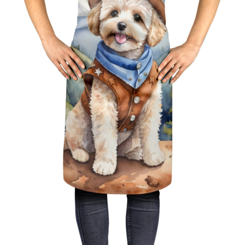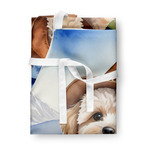 Apron featuring breed specific Maltipoo artwork. Elevate your cooking, baking, and grilling experiences with our versatile Kitchen or BBQ Apron. This Bib Style apron isn’t just limited to culinary activities – it also serves as an excellent baking apron, artist apron, server apron, gardening apron, or even a dog grooming apron. The apron showcases vibrant full-color artwork contributed by one of our talented artists, bringing a dash of style to your daily tasks. With dimensions of approximately 27″W x 30″H, it provides ample coverage to protect your clothing from spills and splashes. Our apron is meticulously crafted from 100% Ultra Spun Polyester, known for its durability and lightweight nature. The apron comes with white tie straps, ensuring a comfortable and adjustable fit for all. It’s a perfect choice for kitchen apron enthusiasts, whether you are a woman or a man. Designed for easy maintenance, this apron is fully machine washable. The quick-drying polyester material actively reduces staining, keeping your apron looking fresh and new for longer. Our beautifully designed apron isn’t just a functional kitchen accessory – it’s a fashion statement in the culinary world!