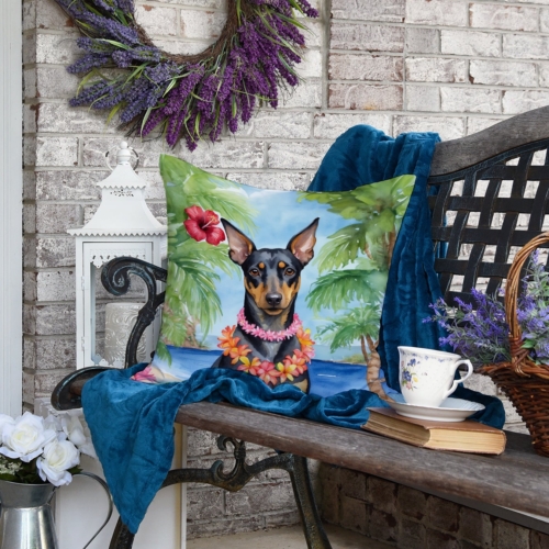 Throw Pillow featuring breed specific Manchester Terrier artwork. Revitalize your outdoor or indoor living space with Caroline’s Treasures 18×18 Fabric Decorative Pillow. With a generously sized dimension of approximately 18 inches by 18 inches, this pillow makes a comfortable and aesthetic addition to any seating area. Made from a unique, water-resistant material developed by Caroline’s Treasures, the pillow sham is 100% polyester fabric that’s durable and ready to weather any condition. Its vibrant, full-color artwork will not fade over time as it is dyed with color-fast dyes. Whether you place it on your patio furniture, porch, veranda, or indoor couch, its soft canvas fabric ensures a cozy experience. The pillow is handcrafted in the United States, featuring a sham created from three pieces of fabric and a polyester insert for enduring shape and overstuffed comfort. Despite being robustly built to endure the outdoors, it is as soft and snug as your favorite indoor cushions. Please note, as all our pillows are handmade, sizes may vary slightly, adding to the charm of this unique decorative item.