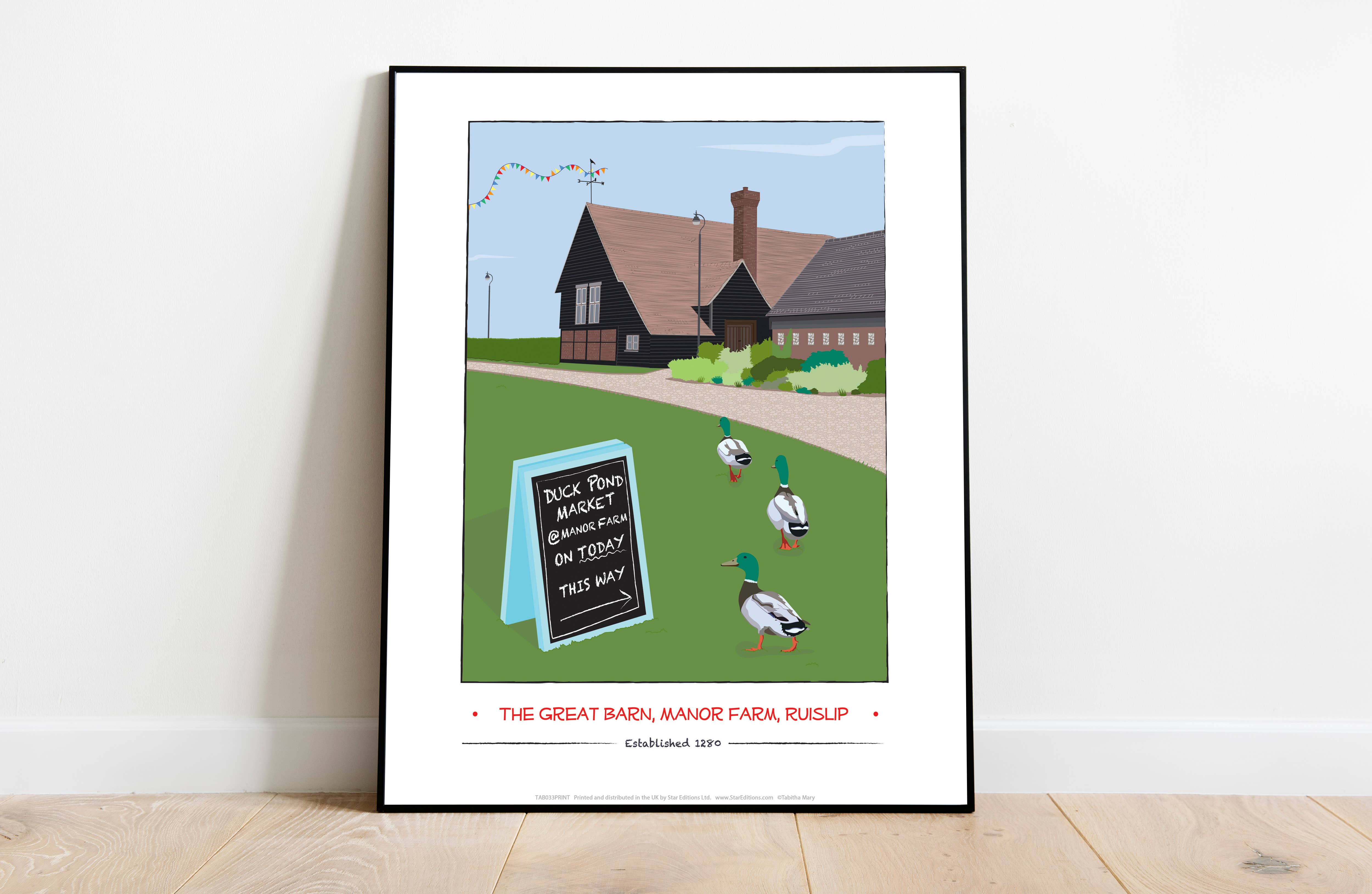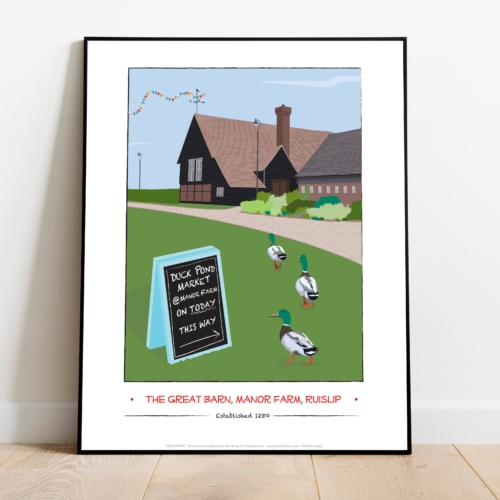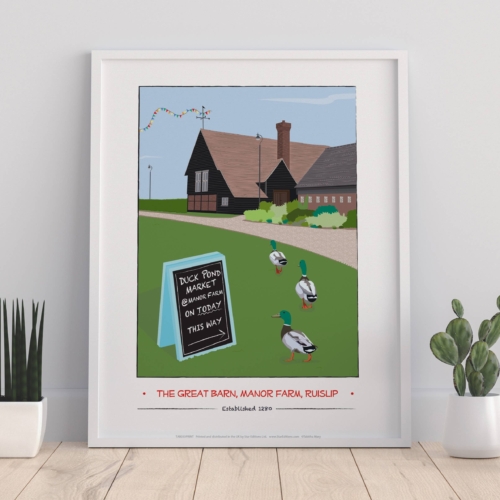 Premium Manor Farm art print measures 11×14 inches in size (28cm x 35.5cm).