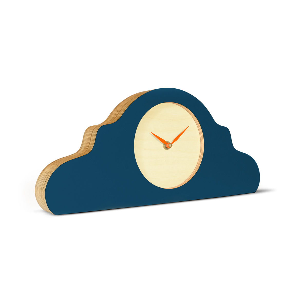 Mantel Clock Petrol Blue – Face: Bare Wood ; Hands: Neon Orange