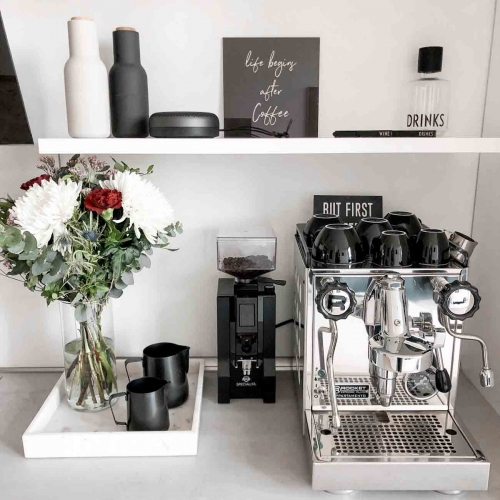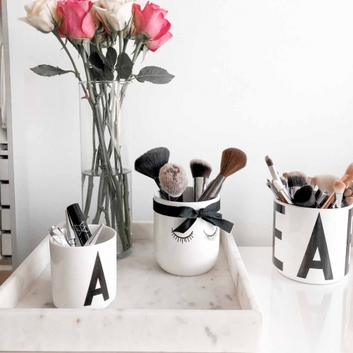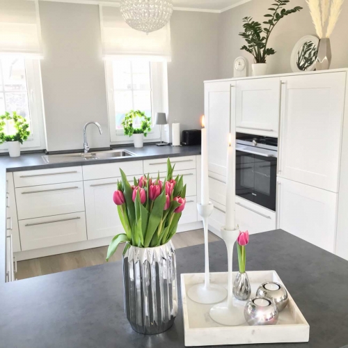 Combine the noble sparkling material of marble with steel candlesticks, picture frames in dark colours or with fragrant candles. The square tray provides decorative space for so many things.