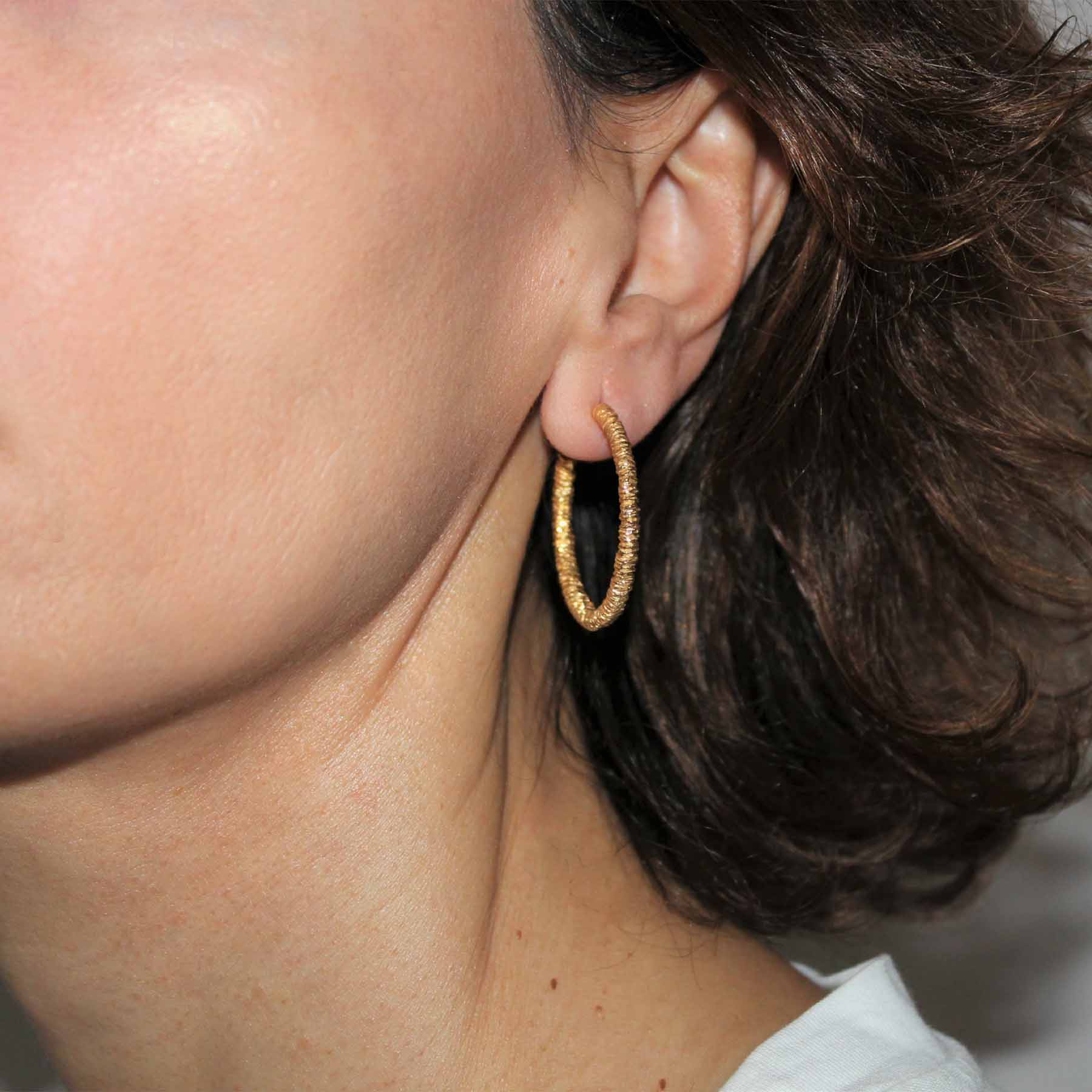 The sophisticated and flattering design of these hoops make them a staple in your jewelry box. Both striking and lightweight, they are perfect for day and night wear. Wear them alone or combined with small hoops or stud earrings if you have more piercings.
