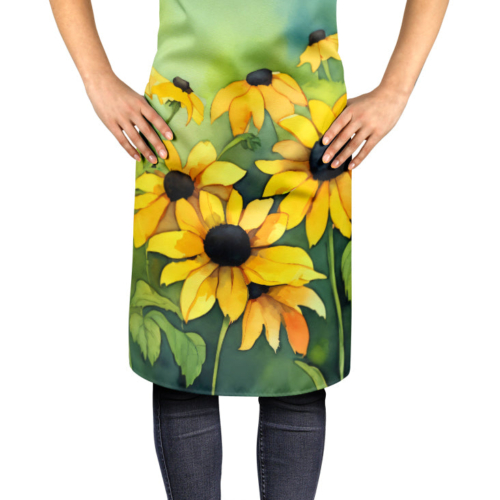 Apron featuring breed specific Maryland Black-Eyed Susans artwork. Elevate your cooking, baking, and grilling experiences with our versatile Kitchen or BBQ Apron. This Bib Style apron isn’t just limited to culinary activities – it also serves as an excellent baking apron, artist apron, server apron, gardening apron, or even a dog grooming apron. The apron showcases vibrant full-color artwork contributed by one of our talented artists, bringing a dash of style to your daily tasks. With dimensions of approximately 27″W x 30″H, it provides ample coverage to protect your clothing from spills and splashes. Our apron is meticulously crafted from 100% Ultra Spun Polyester, known for its durability and lightweight nature. The apron comes with white tie straps, ensuring a comfortable and adjustable fit for all. It’s a perfect choice for kitchen apron enthusiasts, whether you are a woman or a man. Designed for easy maintenance, this apron is fully machine washable. The quick-drying polyester material actively reduces staining, keeping your apron looking fresh and new for longer. Our beautifully designed apron isn’t just a functional kitchen accessory – it’s a fashion statement in the culinary world!