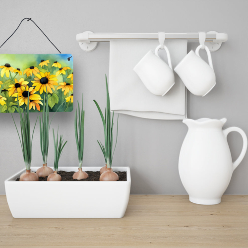 Wall or Door Hanging Prints featuring breed specific Maryland Black-Eyed Susans artwork. Add a splash of color and artistic flair to any indoor or outdoor space with our Aluminum Artwork Prints. These unique prints, featuring full-color, multicolor designs, provide a versatile decorative touch that can enhance a kitchen, bathroom, office, outdoor patio, or even the front door area. Each print measures 8 inches by 12 inches, making it the perfect size to catch the eye without overwhelming your space. Constructed with durability in mind, these prints can be placed outdoors and withstand direct sunlight for a significant amount of time before any fading begins. Designed for easy installation, each print features a black hanging rope and has a lightweight profile. This allows for quick hanging with just about any nail or screw. For safety and aesthetic appeal, the print’s corners are gently rounded. The back of the print showcases a brushed silver color for an added touch of elegance. Rust and fade-resistant, these Aluminum Artwork Prints are not only beautiful but are also built to last. Elevate your space with these stunning prints, crafted with care and artistic passion.