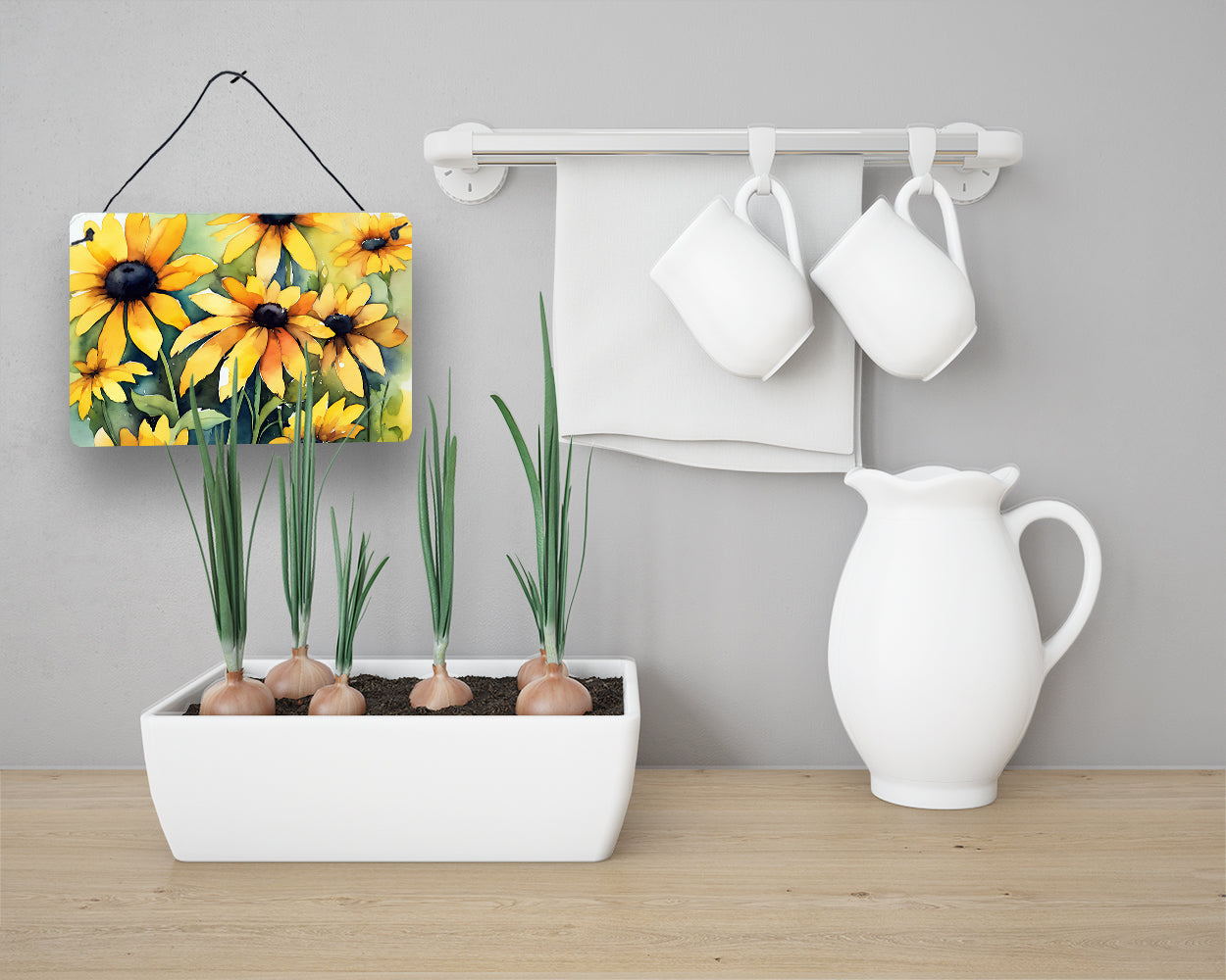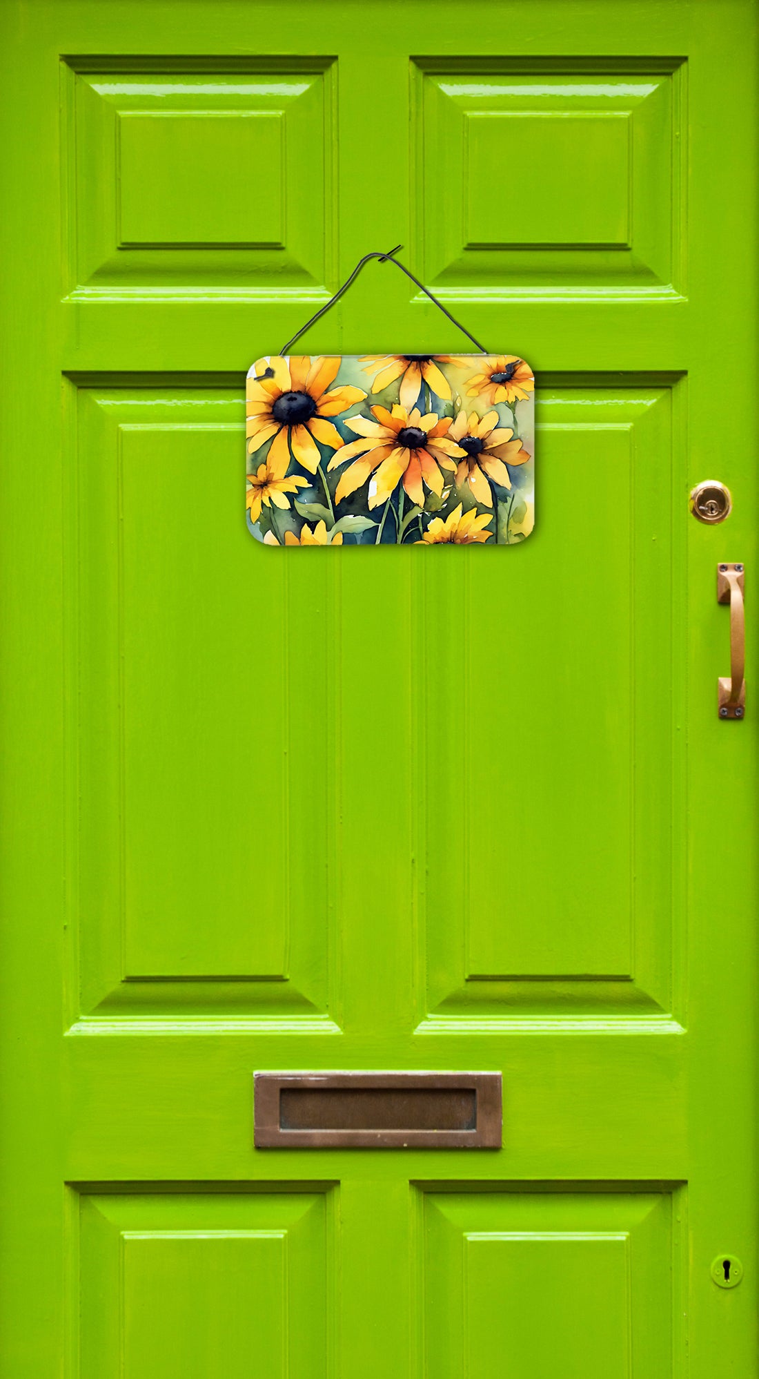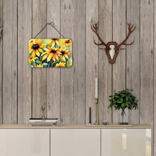 Wall or Door Hanging Prints featuring breed specific Maryland Black-Eyed Susans artwork. Add a splash of color and artistic flair to any indoor or outdoor space with our Aluminum Artwork Prints. These unique prints, featuring full-color, multicolor designs, provide a versatile decorative touch that can enhance a kitchen, bathroom, office, outdoor patio, or even the front door area. Each print measures 8 inches by 12 inches, making it the perfect size to catch the eye without overwhelming your space. Constructed with durability in mind, these prints can be placed outdoors and withstand direct sunlight for a significant amount of time before any fading begins. Designed for easy installation, each print features a black hanging rope and has a lightweight profile. This allows for quick hanging with just about any nail or screw. For safety and aesthetic appeal, the print’s corners are gently rounded. The back of the print showcases a brushed silver color for an added touch of elegance. Rust and fade-resistant, these Aluminum Artwork Prints are not only beautiful but are also built to last. Elevate your space with these stunning prints, crafted with care and artistic passion.