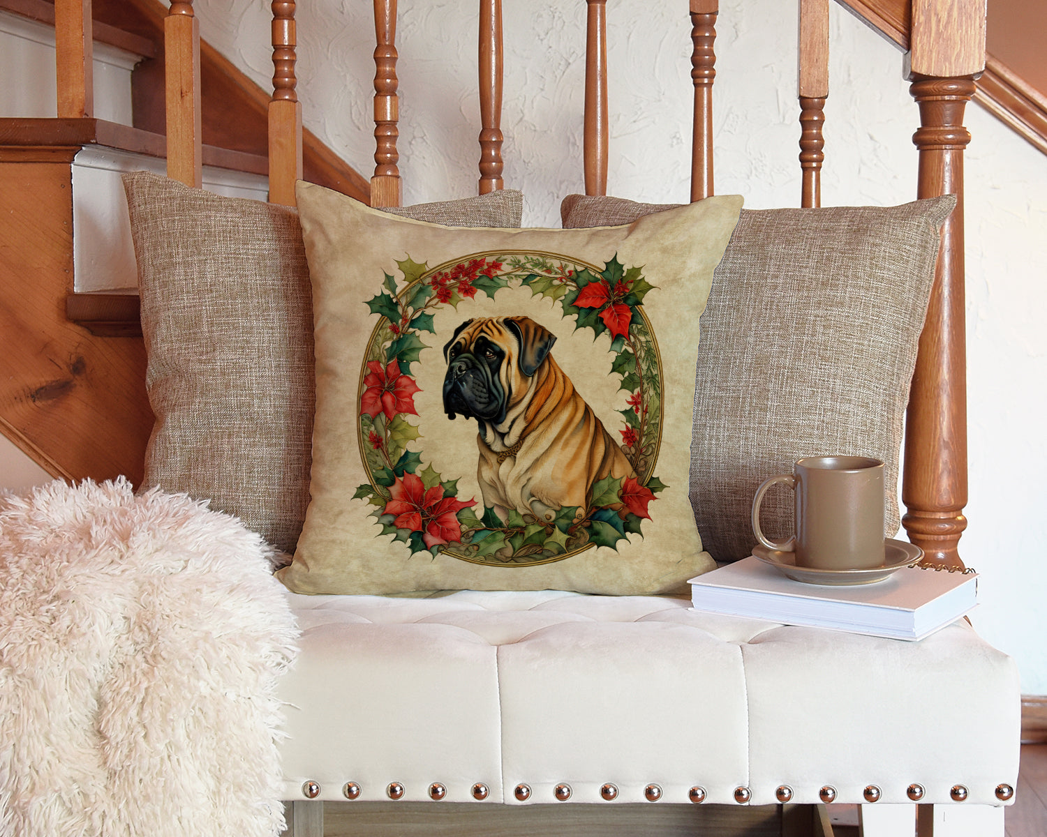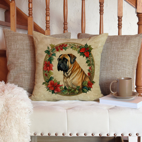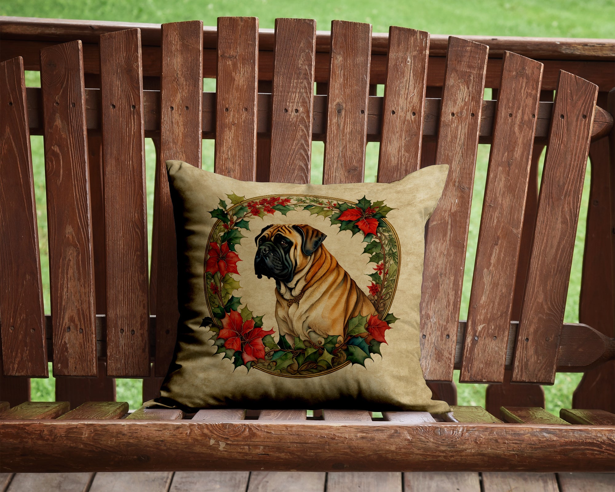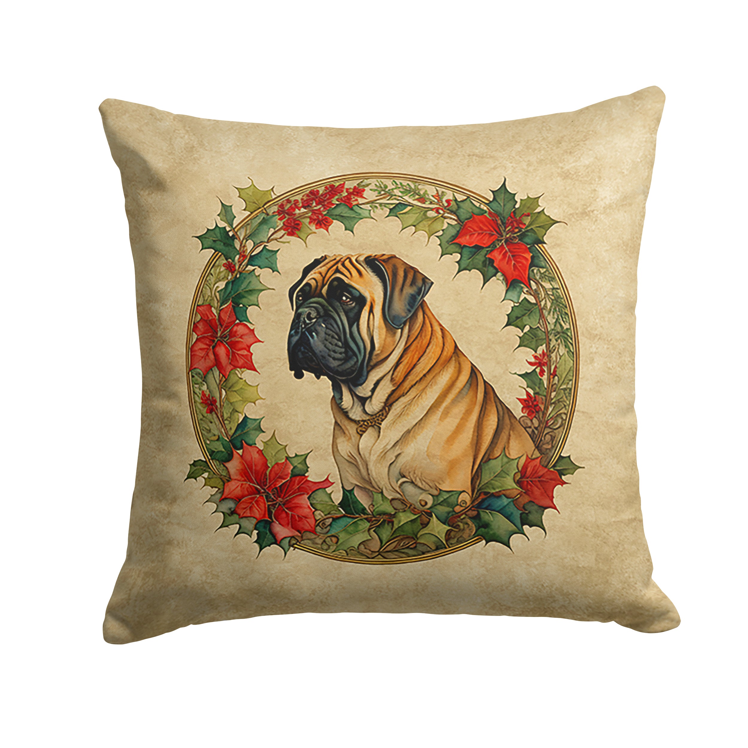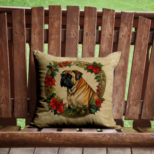 Throw Pillow featuring breed specific Mastiff artwork. Celebrate Christmas with this Christmas Pillow. Add a touch of vibrancy and comfort to your outdoor seating with Caroline’s Treasures Fabric Decorative Pillow. Measuring approximately 14 inches by 14 inches, this outdoor pillow is crafted to elevate the appeal of your patio furniture, infusing it with vivid color and artistic flair. The pillow includes a 100% Polyester Fabric sham filled with a quality pillow form to provide superior comfort. Innovatively made from our brand new material, specifically woven for its water resistance, this pillow is designed for durability. The soft canvas fabric offers versatility in use, fit for your indoor couch or your outdoor patio, porch, or veranda. The fabric is dyed with colorfast dyes built for resilience against weather conditions, ensuring the pillow retains its beauty over time. Constructed by sewing three fabric pieces to create a sham, the polyester insert is then nestled inside to form the pillow, resulting in an overstuffed pillow that maintains its shape. Both the sham and the pillow insert are proudly made in the United States. As the pillows are handcrafted, there may be minor variations in size, further enhancing their unique charm. Experience comfort in style with Caroline’s Treasures Fabric Decorative Pillow.