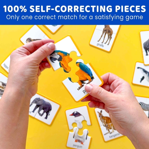 🧩Make learning fun with this adorable, realistic animal matching puzzle for toddlers! 🧩Each puzzle pair showcases a popular animal, making it great for ages 1–3 to explore matching concepts, and 3–5 to reinforce names, memory, and observation. 🦁 Featuring Realistic 16 sturdy 2-piece puzzles, this game helps little ones recognize animals, build memory, and sharpen problem-solving skills — all while having fun. 🐼 Made for Little Hands: A great way to boost fine motor skills, focus, and early cognitive development. 🏡 Versatile Play: Great for home, daycare, or preschool—this toddler memory game is an engaging educational toy kids will love! Size 3.9 x 2.5 inches. Designed in the U.S.A by Adducate. Encourages hand-eye coordination, fine motor skills, and cognitive development.