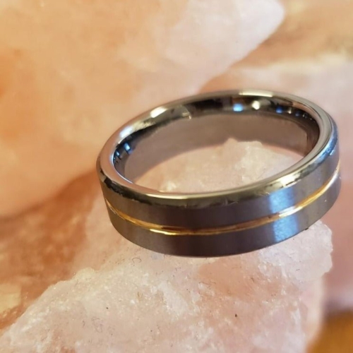 Crafted from high-grade materials, this 6mm Matte Finish Gold IP Groove Tisten Ring features a beveled edge for a standout look. Width: 6mm Available Size: 8 Material: Tisten Finish: Matt Finish with Gold IP Groove Spikes Jewelry