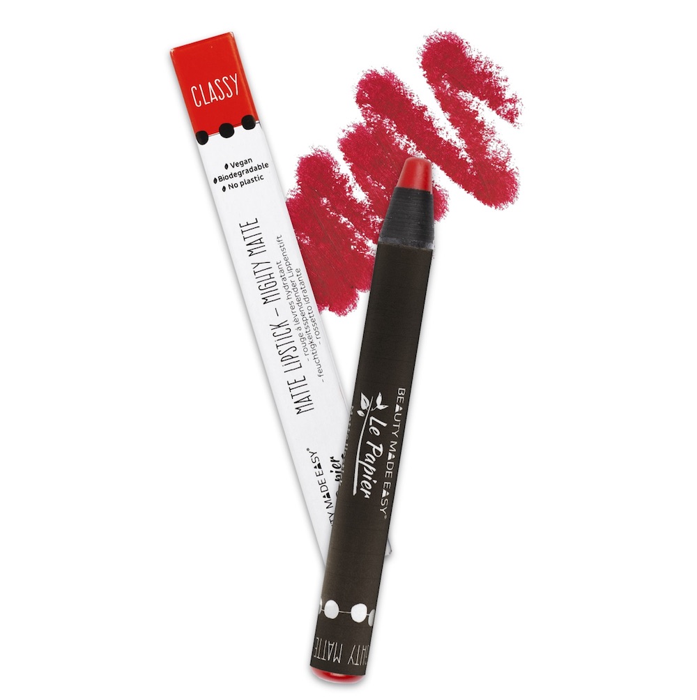 | Finally, a lipstick that does not need any plastic packaging. This Matte Lipstick contains caring coconut oil and shea butter to ensure a silky-matte smooth finish with intensive colour. Apply the product to your lips. Instead of twisting up the product like with a conventional lip balm, you simply pull off the packaging piece by piece. So, when the product tip is almost used up, simply pull the thread about half a cm to open the paper strip and peel it off. Your Le Papier product is now ready for use again. |