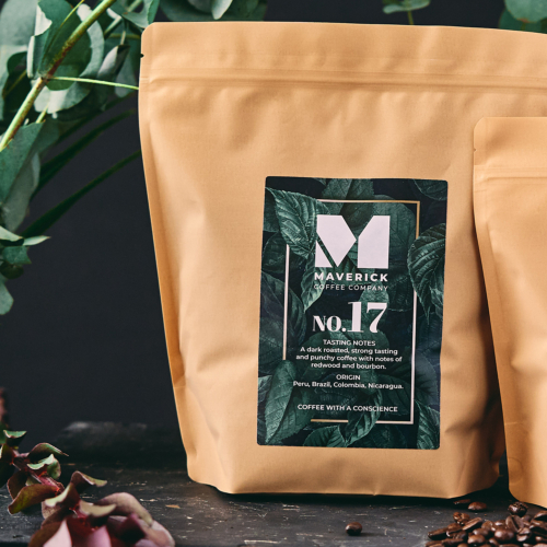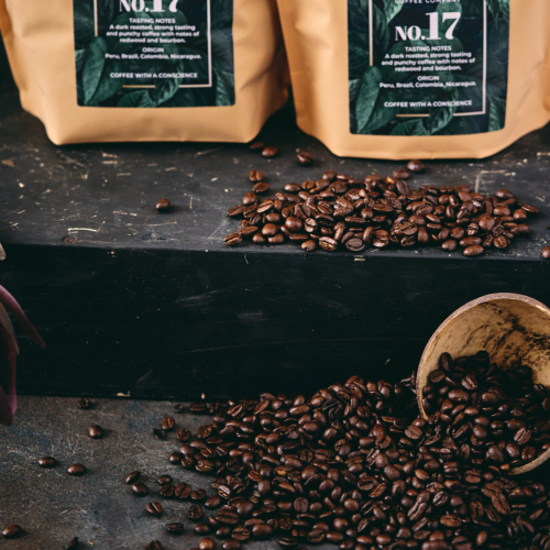 This is our No.17 signature coffee blend which is a dark roast blend and a popular choice for those that like a strong, Italian style coffee. Our No.17 is roasted for a longer time than our other roasts which results in more of the oils reaching the surface. This roast level brings out a more full bodied, spicy flavour which is perfect for achieving that Italian style coffee.