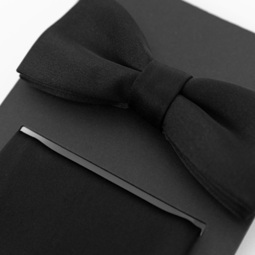 Maya Black Satin Bow Tie & Pocket Square Set