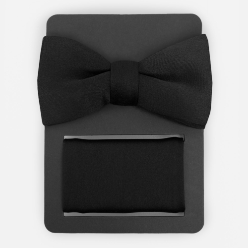 Maya Black Satin Bow Tie & Pocket Square Set