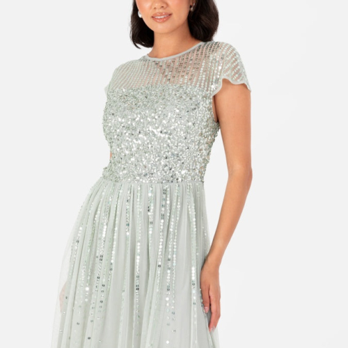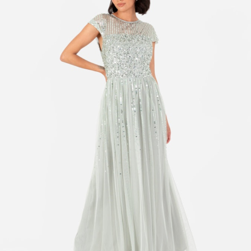 Maya Sage Green Embellished Cap Sleeve Maxi Dress