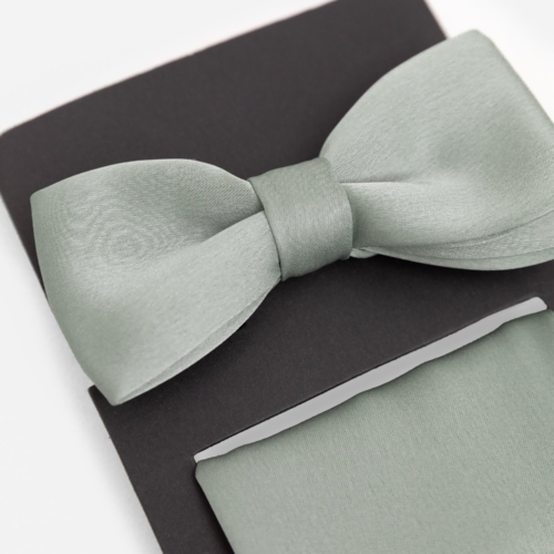 Thoughtfully designed to complement your wedding colour palette, this bow tie and pocket square set is perfect for coordinating with our most popular bridesmaid dresses. Crafted from delicate satin fabric in our most popular Sage Green shade, the pre-tied bow tie and pocket square offer refined elegance to tailored suits, making them an ideal choice for weddings, galas, and formal events. The bow tie is adjustable to fit neck sizes from 13 to 20 inch / 33cm to 50cm necks. Strap Width: 3/4 Inch / 1.6cm. Bow Width and Length: 4.5 inches x 2 inches / 11.5cm x 5cm. Pocket Square Width and Length: 9.5 Inches / 24cm.