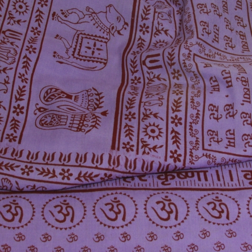 Wrap yourself in sacred vibes. Meditation shawls are suitable for men and women. They are worn during meditation and prayer to help the practitioner withdraw from external stimulations and absorb in contemplation, providing energetic isolation during the practice, and protecting from the sun, chill, or insects, if you practice outdoors. These shawls are decorated with mantras, holy symbols, and Hindu Gods and Goddesses images. They can be used for many other purposes as well: they are beautiful scarves, decorations for the home or the altar, and also large enough to spread on the yoga mat at the gym. The shawls are made of 100% rayon which has a gentle sheen, and graceful drape, and are soft and cool to the touch. the fabric is hand-dyed and block-printed by artisans in the traditional method (expect some print imperfections and slight variations in colors, as it is normal in artisan work). Care instructions: Dry clean or hand-wash in cool water and mild detergent, without soaking (the dye will bleed in the first few washes). Hang-dry. Mantra: Hare Krishna, Hare Krishna, Krishna Krishna, Hare Hare, Hare Rama, Hare Rama, Rama Rama, Hare Hare Depicted symbols: Vishnu Lotus-feet, Surabhi cow, Om. SKU: 521-22 UPC: 8-09581-52122-1 Contains: One shawl Material: 100% Rayon Size: 87”X42” (220×106 cm) Product Weight: 8 oz (230 g) Made in India Return Policy: This product is fully refundable.
