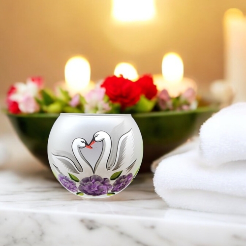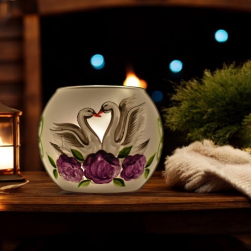 • Handcrafted In L’Viv Oblast, Ukraine• Mouth Blown Glass• Hand Painted – Stencil Free• Wraparound Design Means There’s Always Something To See• Individually Boxed (A Unique Piece Of Glass Art In Every Box)• Medium is Approximately 3″ Tall and 4″ Wide• Ships From Greensburg, PA• 1 Day Order Processing• A Gift That Will Be CherishedBrighten your space with the enchanting glow of our hand-painted blown glass candle holders. Featuring a delicate Swan design, each piece is a testament to exquisite Ukrainian craftsmanship. Perfectly sized for tea lights, this unique holder adds a touch of elegance and artistry to any room. Whether you’re seeking a centerpiece for a cozy evening or a thoughtful gift, this candle holder brings warmth and beauty to your home. Each piece is hand painted with skill, precision and love. We take great pride in our attention to details. Makes a wonderful gift, especially for those looking for something unique! While some prefer to use battery operated candles the best results are achieved using a real candle**. These candle holders are designed for tea lights, but can accommodate larger sizes as well. Large about 4″ tall and 4.5″ wideMedium about 3″ tall and 4″ wide **Please note the candle holders are hand painted on the outside, so please do not allow them to get wet as water can damage the finish. To remove any wax we suggest a plastic butter-knife or a finger nail to scrape and a napkin or towel to wipe the inside. Please be gentle. Perfect for Christmas, Easter, New Years, Birthdays, Anniversaries, Graduations, Valentine’s Day, Mothers Day, or celebrate a House Warming. Embrace the artistry of glass candle holders, a timeless handcrafted gift. Please allow for slight variances as each piece is younique, just like you! Note: The listed price is for a single candle holder. Made in Ukraine