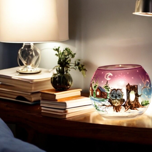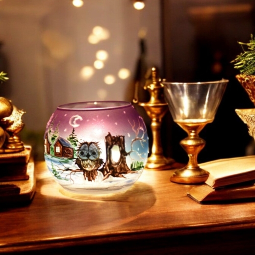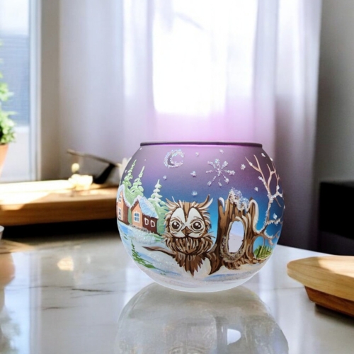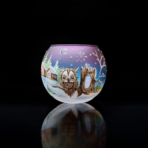• Handcrafted In L’Viv Oblast, Ukraine• Mouth Blown Glass• Hand Painted – Stencil Free• Wraparound Design Means There’s Always Something To See• Individually Boxed (A Unique Piece Of Glass Art In Every Box)• Medium is Approximately 3″ Tall and 4″ Wide• Ships From Greensburg, PA• 1 Day Order Processing• A Gift That Will Be CherishedBrighten your space with the enchanting glow of our hand-painted blown glass candle holders. Featuring a intricate Fun Owl design, each piece is a testament to exquisite Ukrainian craftsmanship. Perfectly sized for tea lights, this unique holder adds a touch of elegance and artistry to any room. Whether you’re seeking a centerpiece for a cozy evening or a thoughtful gift, this candle holder brings warmth and beauty to your home decor. This candle holder can accommodate 1 tea light. Each piece is hand painted and we take great pride in our attention to details. Makes a wonderful gift, especially for those looking for something unique! Each of our blown glass pieces is hand painted with skill, precision and love. While some prefer to use battery operated candles the best results are achieved using a real candle**. These candle holders are designed to accommodate tea lights. Large about 4″ tall and 4.5″ wideMedium about 3″ tall and 4″ wide **Please note the candle holders are hand painted on the outside, so please do not allow them to get wet as water can damage the finish. To remove any wax we suggest a plastic butter-knife or a finger nail to scrape and a napkin or towel to wipe the inside. Please be gentle. Perfect for Christmas, Easter, New Years, Birthdays, Anniversaries, Graduations, Valentine’s Day, Mothers Day, or celebrate a House Warming. Embrace the artistry of glass candle holder, a timeless handcrafted gift. Please allow for slight variances as each piece is unique, just like you. Note: The listed price is for a single candle holder Made In Ukraine