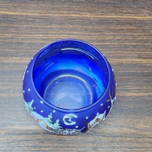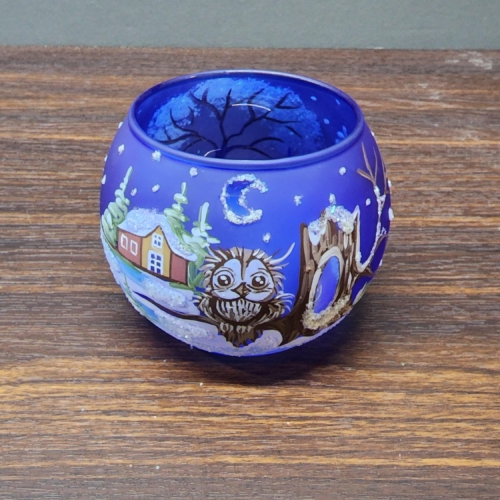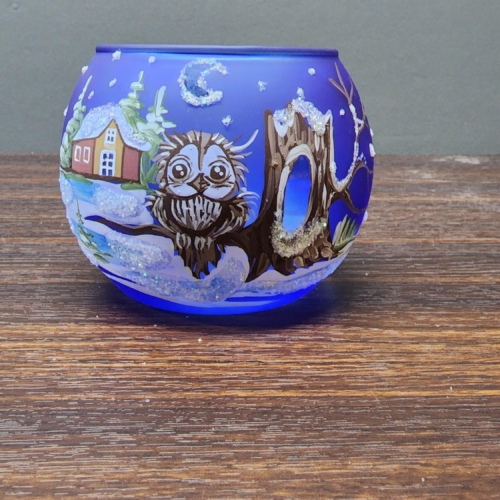 Medium Light Blue Glass Candle Holder, Hand Crafted in Ukraine, Fun Owl, Wonderful Year Round (Copy)