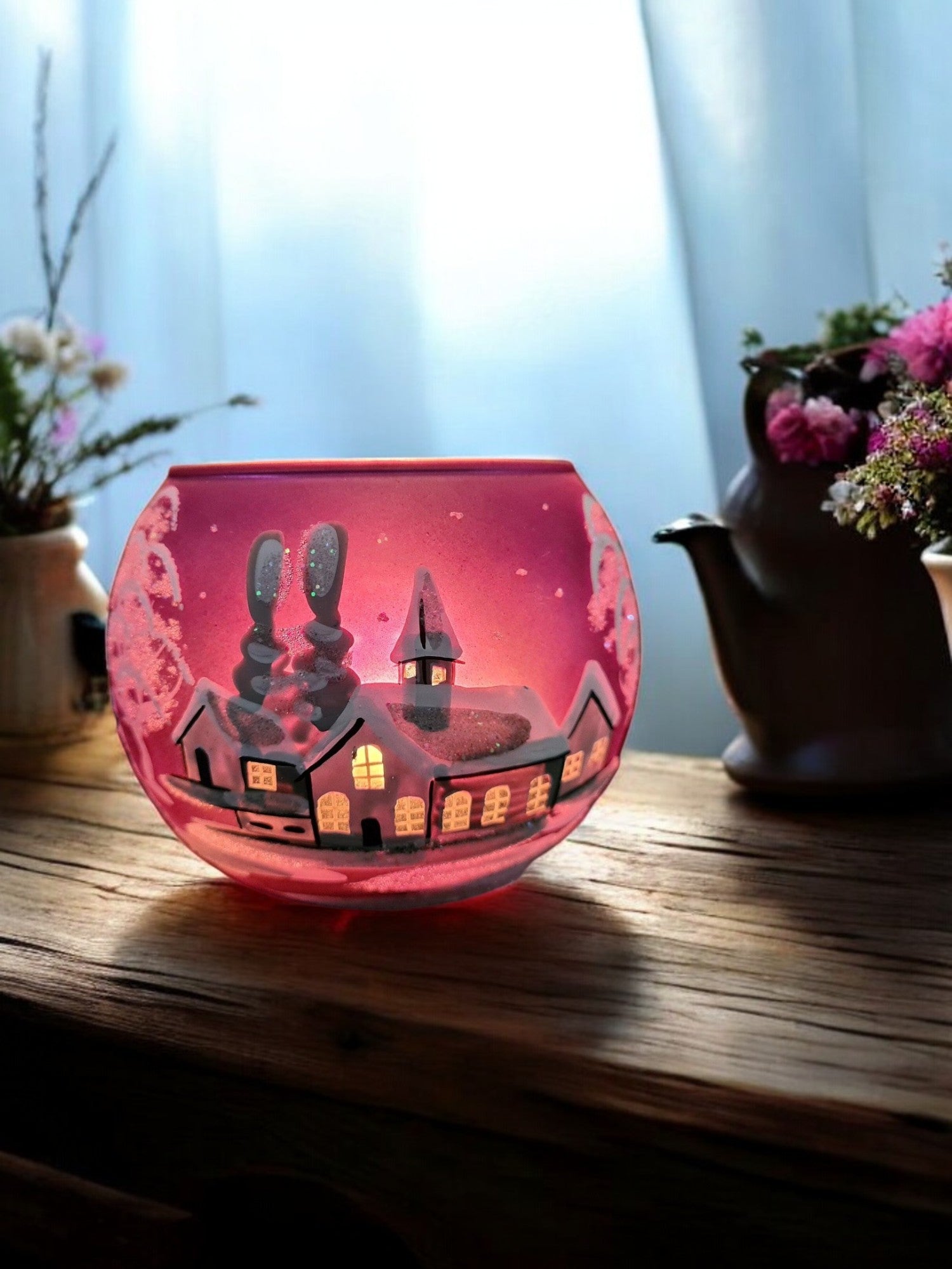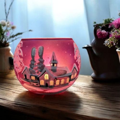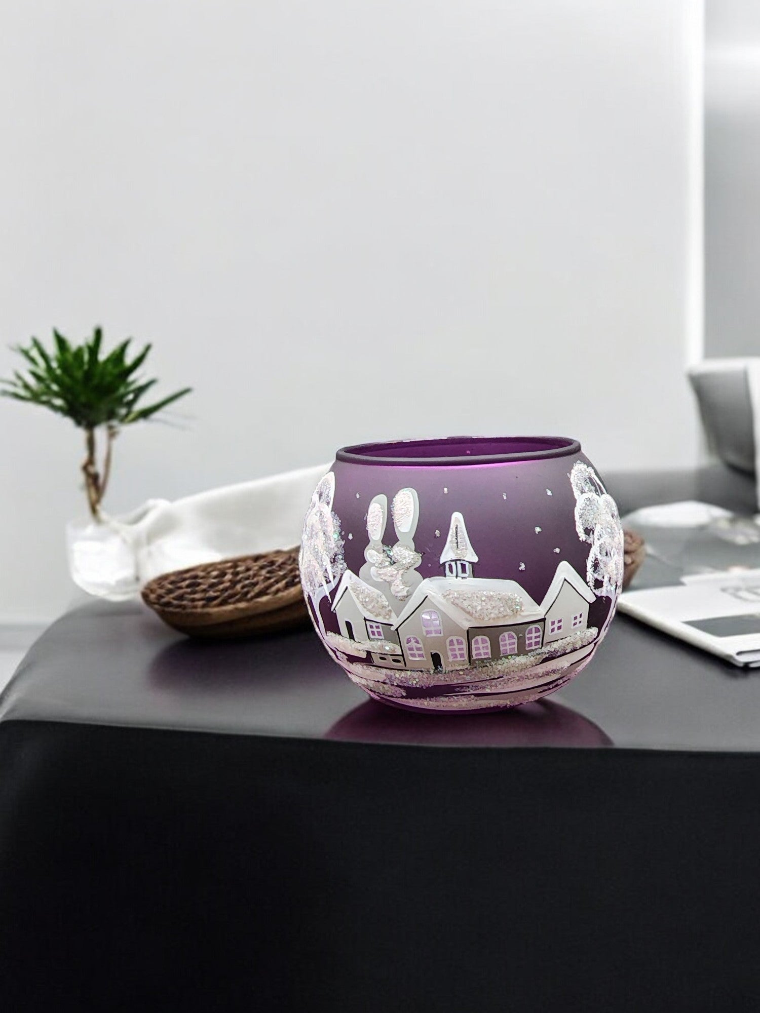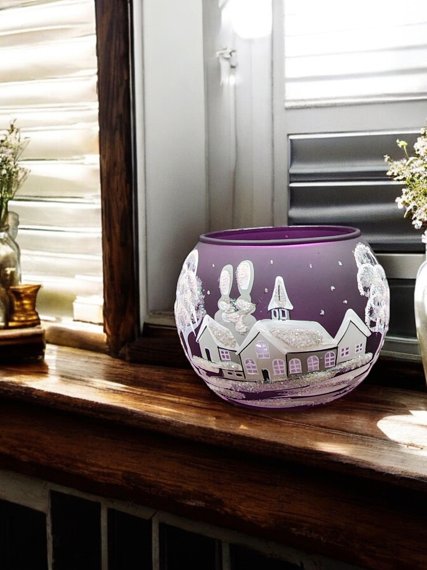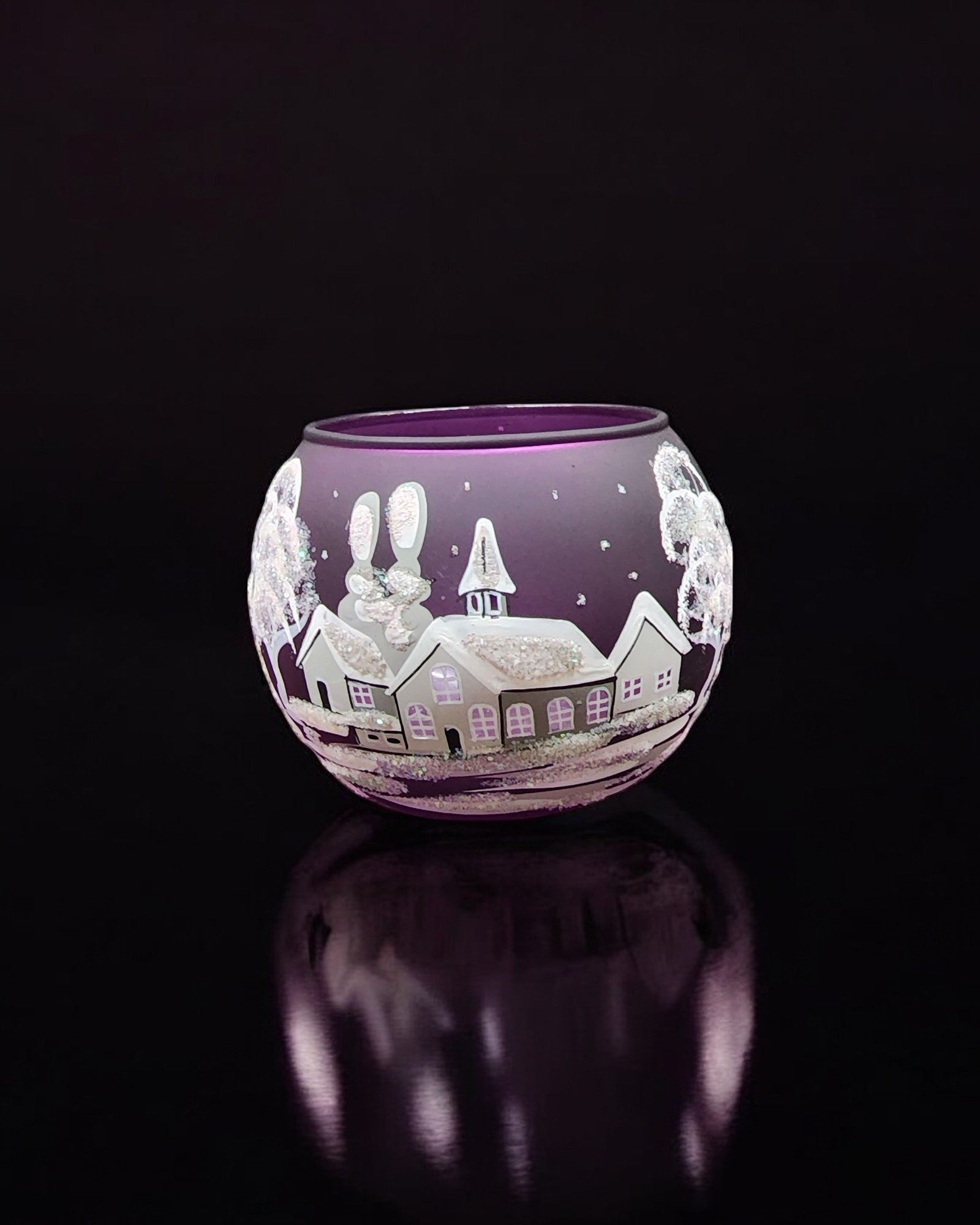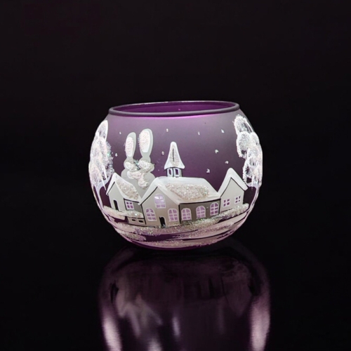 Medium Purple Glass Candle Holder, Hand Crafted in Ukraine, White Church Winter Wonderland, Wonderful Year Round
