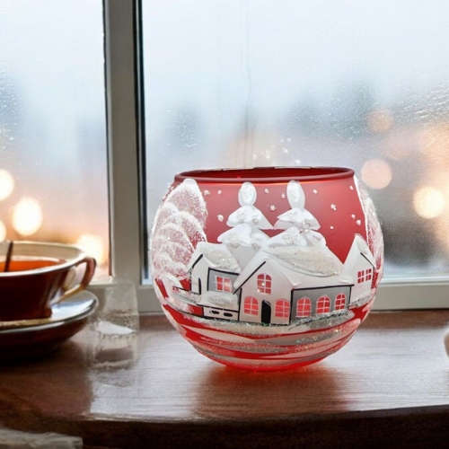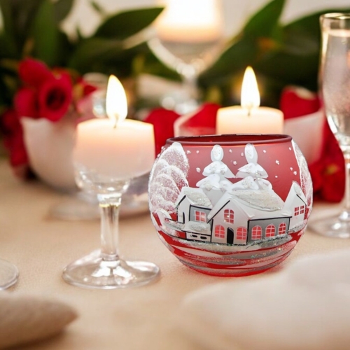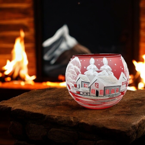 • Handcrafted In L’Viv Oblast, Ukraine• Mouth Blown Glass• Hand Painted – Stencil Free• Etched Out Windows Allow You To See Right Inside When The Candle Is Lit – Truly Beautiful• Wraparound Design Means There’s Always Something To See• Individually Boxed (A Unique Piece Of Glass Art In Every Box)• Medium is Approximately 3″ Tall and 4″ Wide• Ships From Greensburg, PA• 1 Day Order Processing• A Gift That Will Be CherishedBrighten your space with the enchanting glow of our hand-painted blown glass candle holders. Featuring a intricate White Cabins design, each piece is a testament to exquisite Ukrainian craftsmanship. Perfectly sized for tea lights, this unique holder adds a touch of elegance and artistry to any room. Whether you’re seeking a centerpiece for a cozy evening or a thoughtful gift, this candle holder brings warmth and beauty to your home decor. This candle holder can accommodate 1 tea light. Each piece is hand painted and we take great pride in our attention to details. Makes a wonderful gift, especially for those looking for something unique! Each of our blown glass pieces is hand painted with skill, precision and love. While some prefer to use battery operated candles the best results are achieved using a real candle**. These candle holders are designed to accommodate tea lights. Large about 4″ tall and 4.5″ wideMedium about 3″ tall and 4″ wideSmall about 2″ tall and 2.5″ wide **Please note the candle holders are hand painted on the outside, so please do not allow them to get wet as water can damage the finish. To remove any wax we suggest a plastic butter-knife or a finger nail to scrape and a napkin or towel to wipe the inside. Please be gentle. Perfect for Christmas, Easter, New Years, Birthdays, Anniversaries, Graduations, Valentine’s Day, Mothers Day, or celebrate a House Warming. Embrace the artistry of glass candle holder, a timeless handcrafted gift. Please allow for slight variances as each piece is unique, just like you. Note: The listed price is for a single candle holder Made In Ukraine