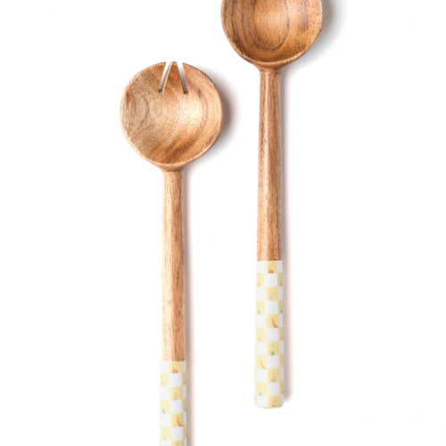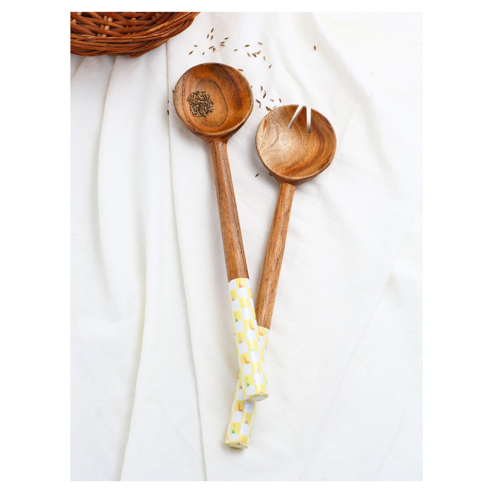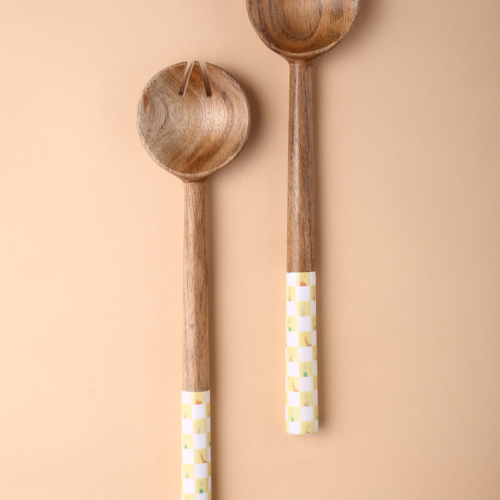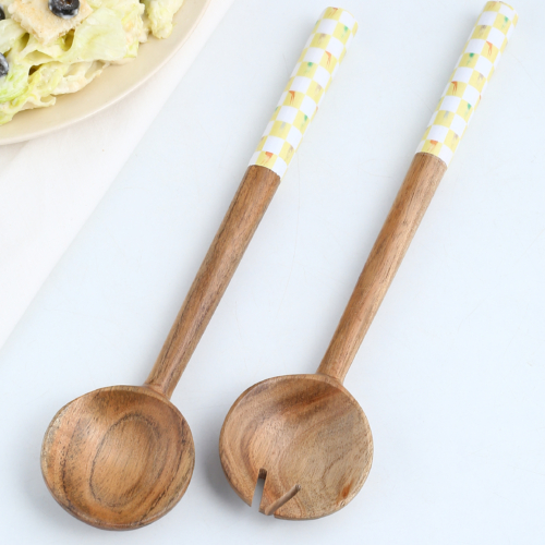 Add unexpected elegance to your serveware arsenal with this two-piece handcrafted salad server set! Whether you use it to toss up your favorite salads and sides or gift this set to your favorite hostess, this meena enamelled wooden utensil set works in style all week. Care Instructions- Hand wash only