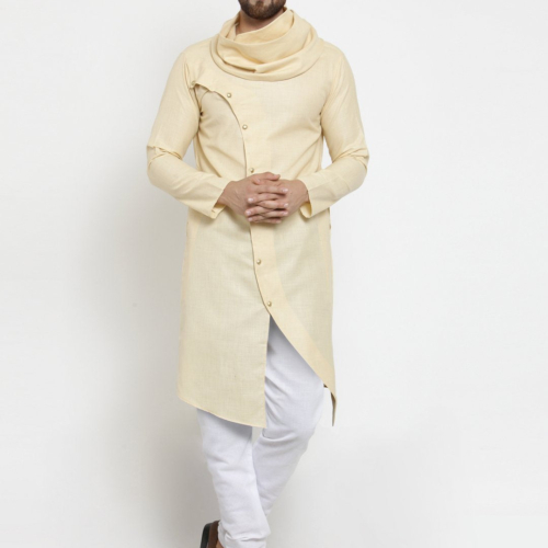 Men’s Beige Fancy Cotton Kurta Pajama Set