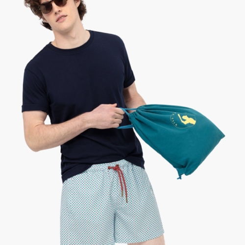 Swimsuits made with 7% lycra and 93% polyester , mid- length cut with elastic waist and adjustable drawstring closure. All our men’s swimsuits go through 3 manufacturing phases, giving a perfect result in terms of materials and quality.