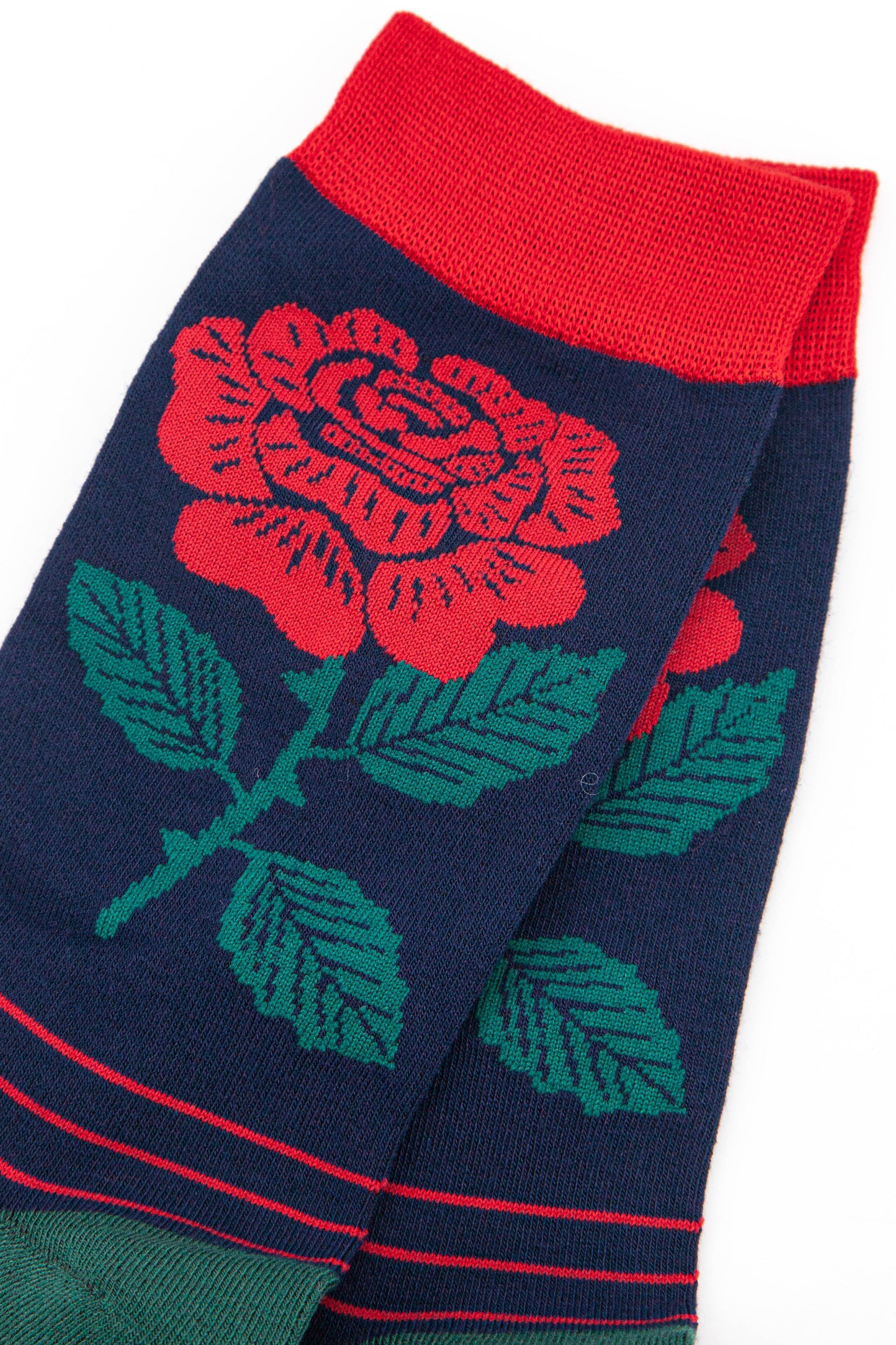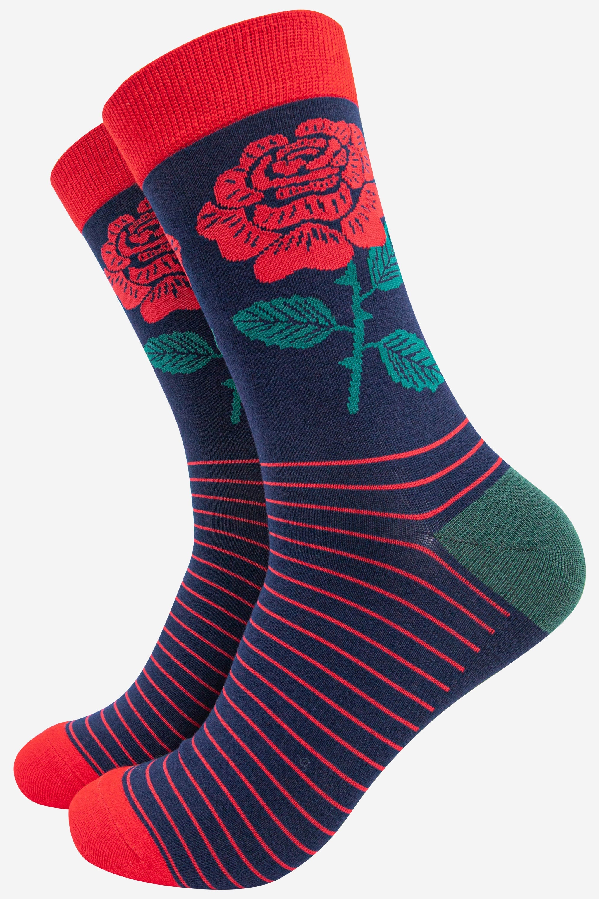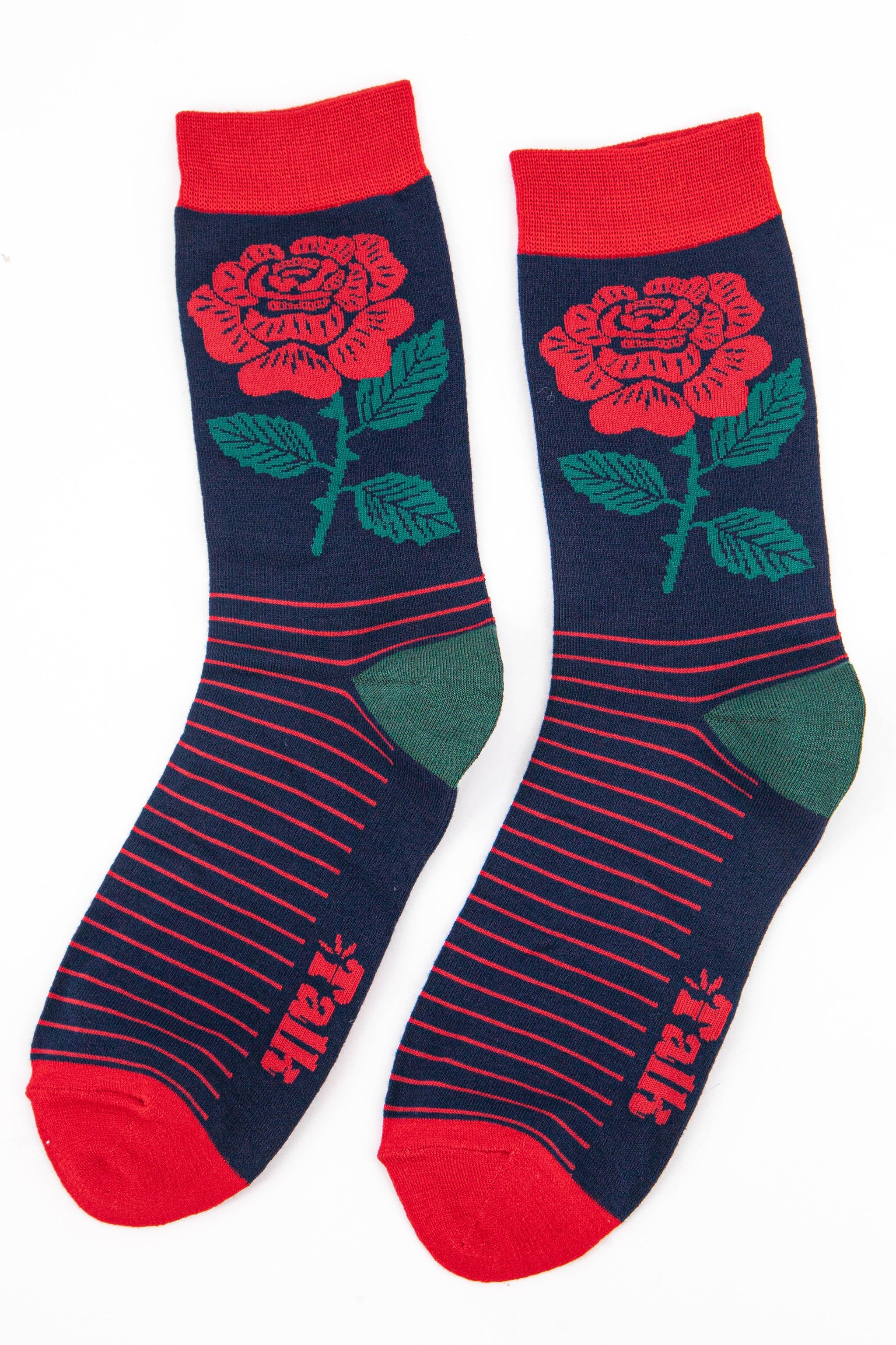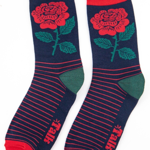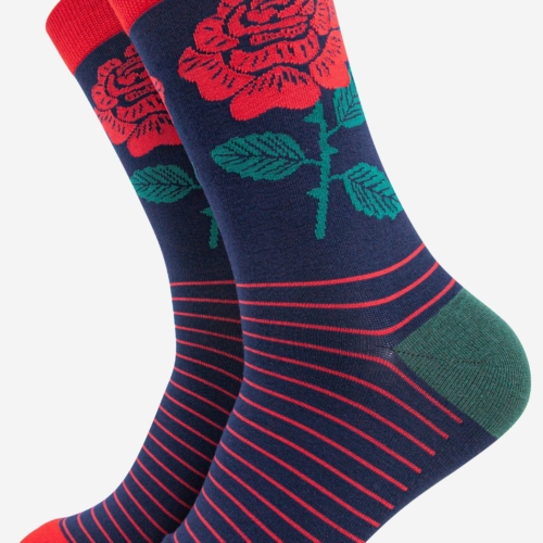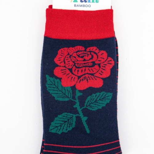 England’s National flower men’s bamboo socks. A traditional English Rose design with stripes. Men’s English Rose Emblem Print Bamboo Socks Anti-Bacterial & Anti-Fungal Soft & Breathable Eco-Friendly 70% Bamboo, 27% Polyester, 3% Elastane UK 7-11 | EU 40.5-46 | US 8-12 Machine Washable (Delicate)