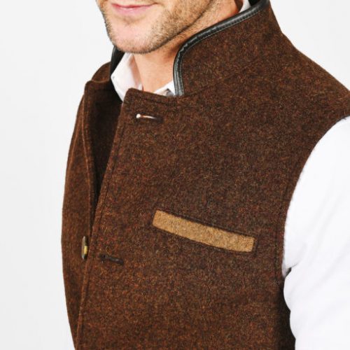 Our Chestnut Brown merino wool gilet is so named for its deep brown hue which has been subtly contrasted with lighter brown pocket detailing. The collar is finished with British leather trim and an inner top pocket ensures that essential items can be kept easily to hand.