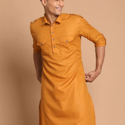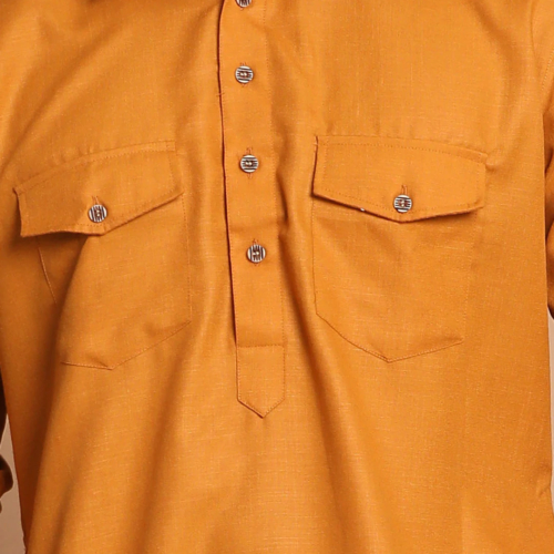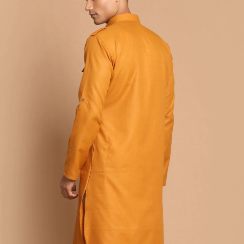 Kurta Color: Mustard|| Bottom Color: Off White Kurta Fabric: Cotton|| Bottom Fabric: Cotton Kurta Neck: Mandarian CollarTRUEKurta Work: Solid|| Bottom Work: Solid Type: Men Kurta With Pant Product Size: Kurta’s actual chest measurement is 6 inches more i.e. for 4 Sizes we give: M (38), L (40), XL(42), XXL (44) actual product chest will be M – 44,L – 46 XL – 48 XXL – 50 inches respectively Packaging Content: 1 Kurta & 1 Bottom Closure Type: Pull On Front Button Loop Wash Care: First Wash Dry Clean Recommended, Then Normal Machine Wash At Home. Fit Type: Regular/Comfort, Kurta Length: Knee Length Kurta Suitable For: Party Wear And Indian Traditional Occasions, Wedding Celebration Ethnic Clothing. Great As A Gift For Men: Everyone Uses Partywear On Numerous Occasions, Give This Kurta Pyjama Set As A Thoughtful Gift For Your Loved One’s Next Birthday, Anniversary, Wedding Or Any Occasion. This Is Why It Makes The Perfect Present For Your Dad, Husband, Son, Or Friend. Please Note: We Strive To Make Our Colours As Accurate As Possible; However, Due To Individual Monitor Settings, We Cannot Guarantee That The Color You See On Your Screen Is The Exact Color Of The Product. HIGH QUALITY MATERIAL: Lightweight And Breathable Material Gives This Kurta Pajama Set Soft, Comfortable Feel. Made From Cotton Fabric. The Kurta Is Lightweight With Vented Side. Designs Feature Modern And Innovative Details That Appeal To Everyone. Made in INDIA