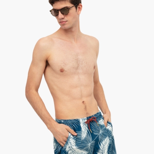 Palmas Azul men’s swimsuit printed in blue. The classic cut men’s swimsuit is distinguished by having a bermuda-like style. Its comfort is its main advantage due to the material used and the style of the cut.