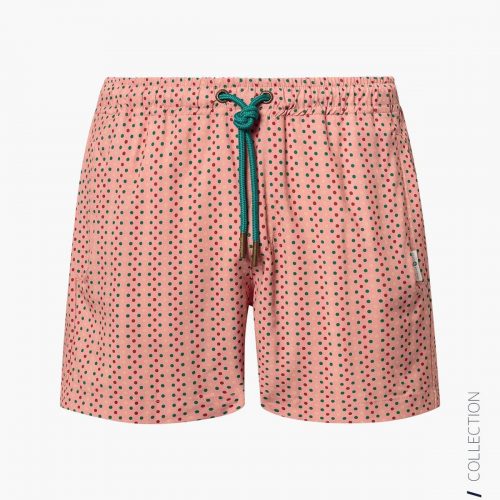 Pink Dots men’s swimsuit, one of our classics. The classic cut men’s swimsuit is distinguished by having a bermuda-like style. Its comfort is its main advantage due to the material used and the style of the cut.