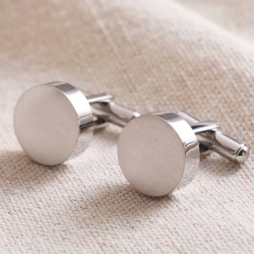 Men’s Round cufflinks brushed finish silver