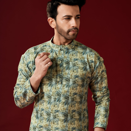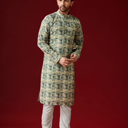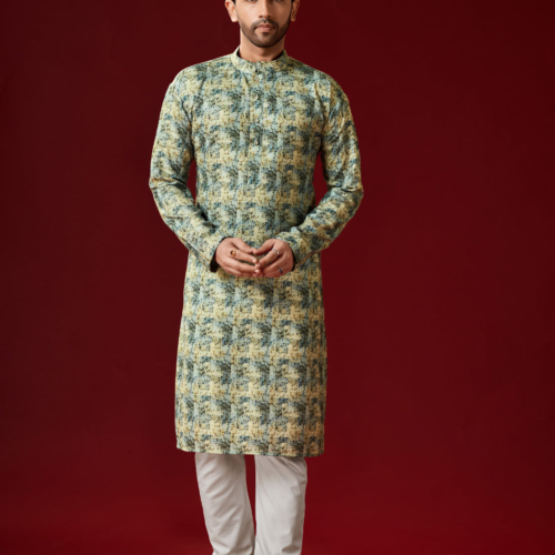 Kurta Color: Sage Green|| Bottom Color: Off White Kurta Fabric: Cotton|| Bottom Fabric: Cotton Kurta Neck: Mandarian Collar TRUE Kurta Work: Printed|| Bottom Work: Solid Type: Men Kurta With Pant Product Size: Kurta’s actual chest measurement is 6 inches more i.e. for 4 Sizes we give: M (38), L (40), XL(42), XXL (44) actual product chest will be M – 44,L – 46 XL – 48 XXL – 50 inches respectively Packaging Content: 1 Kurta & 1 Bottom Closure Type: Pull On Front Button Loop Wash Care: First Wash Dry Clean Recommended, Then Normal Machine Wash At Home. Fit Type: Regular/Comfort, Kurta Length: Knee Length Kurta Suitable For: Party Wear And Indian Traditional Occasions, Wedding Celebration Ethnic Clothing. Great As A Gift For Men: Everyone Uses Partywear On Numerous Occasions, Give This Kurta Pyjama Set As A Thoughtful Gift For Your Loved One’s Next Birthday, Anniversary, Wedding Or Any Occasion. This Is Why It Makes The Perfect Present For Your Dad, Husband, Son, Or Friend. Please Note: We Strive To Make Our Colours As Accurate As Possible; However, Due To Individual Monitor Settings, We Cannot Guarantee That The Color You See On Your Screen Is The Exact Color Of The Product. HIGH QUALITY MATERIAL: Lightweight And Breathable Material Gives This Kurta Pajama Set Soft, Comfortable Feel. Made From Cotton Fabric. The Kurta Is Lightweight With Vented Side. Designs Feature Modern And Innovative Details That Appeal To Everyone. Made in INDIA