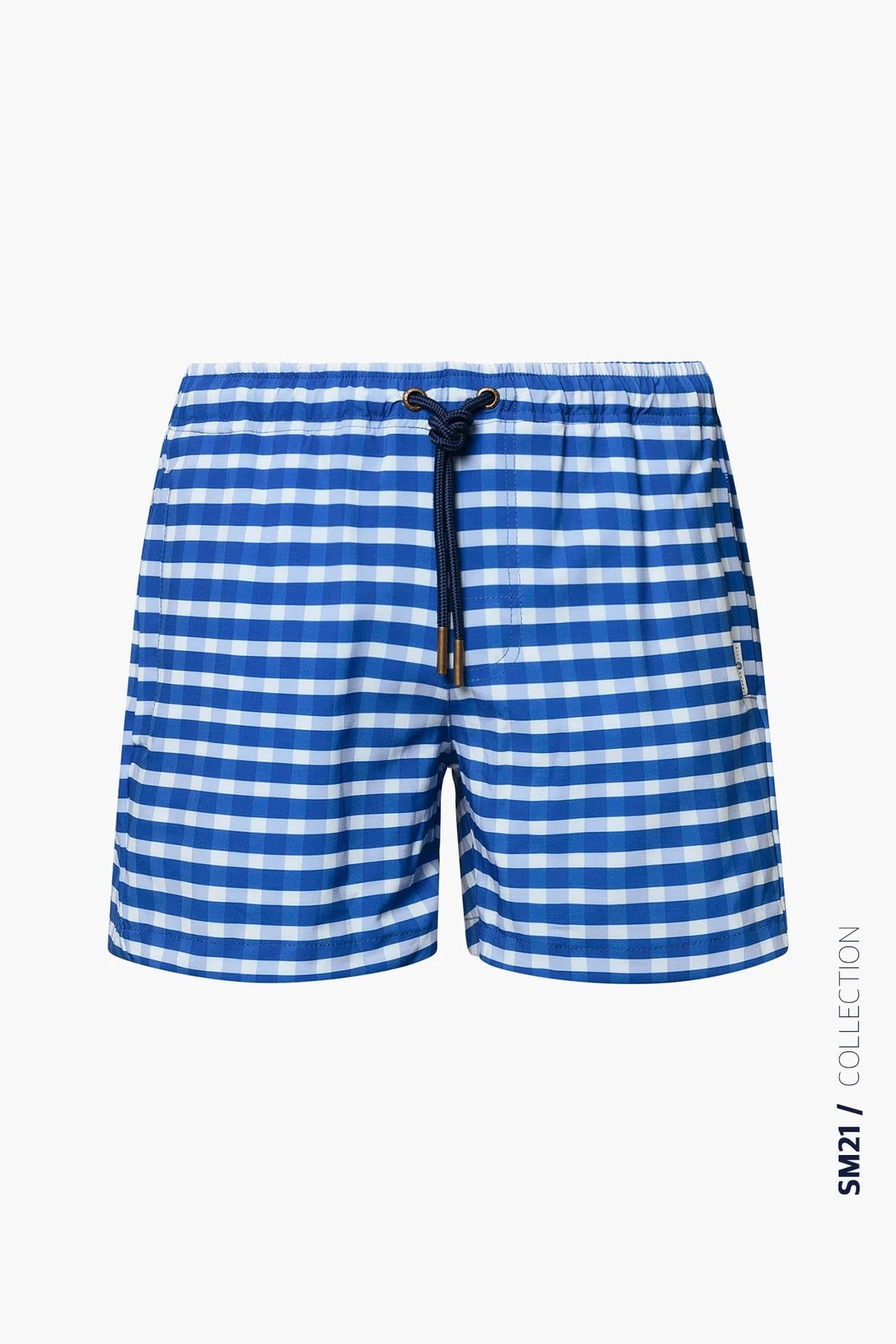 Square blue men’s swimsuit, one of our classics. The classic cut men’s swimsuit is distinguished by having a bermuda-like style. Its comfort is its main advantage due to the material used and the style of the cut.