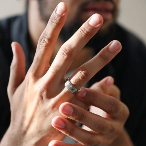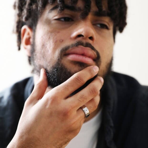 Chunky in size, this modern ring features a single stainless steel band of polished silver metal. The centre of the ring is accented by a quirky spinning centre, perfect for spinning between fingers when anxious, fidgety, or bored! This feature holds moon phase cut-outs with gold details shining through. DimensionsS/M – UK ring size SL/XL – UK ring size Wring thickness – 0.8cmMade fromstainless steel