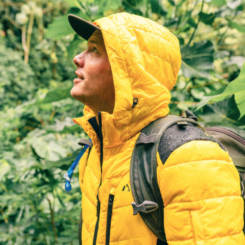 Our EcoDown Jacket is lightweight and carefully designed to keep you warm and dry. Made with a 100% recycled polyester RipStop shell and high-quality synthetic down made from recycled plastic bottles.