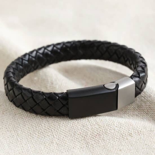 A stylish bracelet for men, this thick woven leather bracelet in black. With a brushed magnetic clasp to fasten, this sleek strap bracelet is the perfect unique piece.Inner circumference 18cm. Outer 20cm