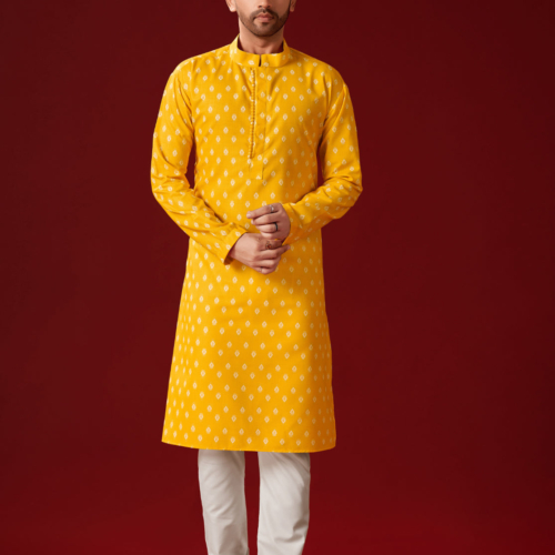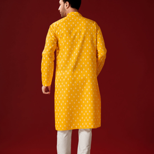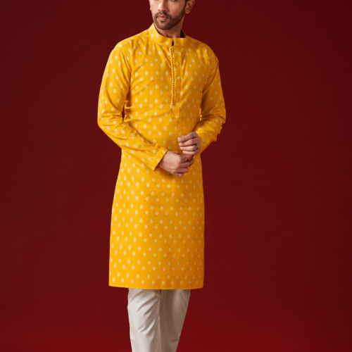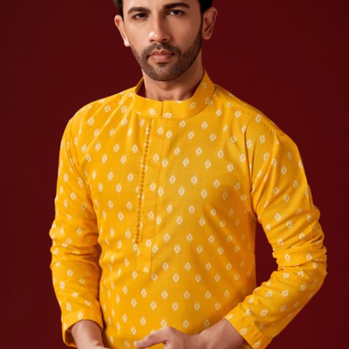 Kurta Color: Yellow|| Bottom Color: Off White Kurta Fabric: Cotton|| Bottom Fabric: Cotton Kurta Neck: Mandarian Collar Kurta Work: Printed|| Bottom Work: Solid Type: Men Kurta With Pant Product Size: Kurta’s actual chest measurement is 6 inches more i.e. for 4 Sizes we give: M (38), L (40), XL(42), XXL (44) actual product chest will be M – 44,L – 46 XL – 48 XXL – 50 inches respectively Packaging Content: 1 Kurta & 1 Bottom Closure Type: Pull On Front Button Loop Wash Care: First Wash Dry Clean Recommended, Then Normal Machine Wash At Home. Fit Type: Regular/Comfort, Kurta Length: Knee Length Kurta Suitable For: Party Wear And Indian Traditional Occasions, Wedding Celebration Ethnic Clothing. Great As A Gift For Men: Everyone Uses Partywear On Numerous Occasions, Give This Kurta Pyjama Set As A Thoughtful Gift For Your Loved One’s Next Birthday, Anniversary, Wedding Or Any Occasion. This Is Why It Makes The Perfect Present For Your Dad, Husband, Son, Or Friend. Please Note: We Strive To Make Our Colours As Accurate As Possible; However, Due To Individual Monitor Settings, We Cannot Guarantee That The Color You See On Your Screen Is The Exact Color Of The Product. HIGH QUALITY MATERIAL: Lightweight And Breathable Material Gives This Kurta Pajama Set Soft, Comfortable Feel. Made From Cotton Fabric. The Kurta Is Lightweight With Vented Side. Designs Feature Modern And Innovative Details That Appeal To Everyone. Made in INDIA