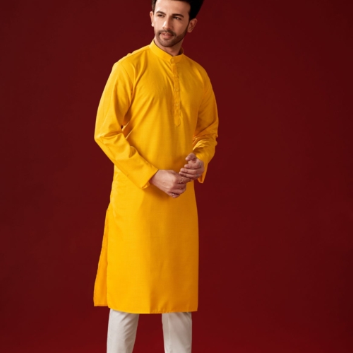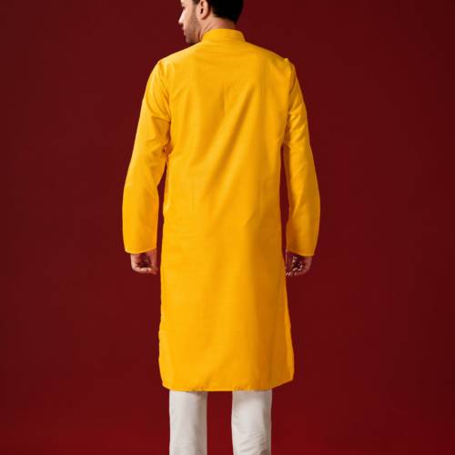 Kurta Color: Yellow|| Bottom Color: Off White Kurta Fabric: Cotton|| Bottom Fabric: Cotton Kurta Neck: Mandarian CollarTRUEKurta Work: Solid|| Bottom Work: Solid Type: Men Kurta With Pant Product Size: Kurta’s actual chest measurement is 6 inches more i.e. for 4 Sizes we give: M (38), L (40), XL(42), XXL (44) actual product chest will be M – 44,L – 46 XL – 48 XXL – 50 inches respectively Packaging Content: 1 Kurta & 1 Bottom Closure Type: Pull On Front Button Loop Wash Care: First Wash Dry Clean Recommended, Then Normal Machine Wash At Home. Fit Type: Regular/Comfort, Kurta Length: Knee Length Kurta Suitable For: Party Wear And Indian Traditional Occasions, Wedding Celebration Ethnic Clothing. Great As A Gift For Men: Everyone Uses Partywear On Numerous Occasions, Give This Kurta Pyjama Set As A Thoughtful Gift For Your Loved One’s Next Birthday, Anniversary, Wedding Or Any Occasion. This Is Why It Makes The Perfect Present For Your Dad, Husband, Son, Or Friend. Please Note: We Strive To Make Our Colours As Accurate As Possible; However, Due To Individual Monitor Settings, We Cannot Guarantee That The Color You See On Your Screen Is The Exact Color Of The Product. HIGH QUALITY MATERIAL: Lightweight And Breathable Material Gives This Kurta Pajama Set Soft, Comfortable Feel. Made From Cotton Fabric. The Kurta Is Lightweight With Vented Side. Designs Feature Modern And Innovative Details That Appeal To Everyone. Made in INDIA
