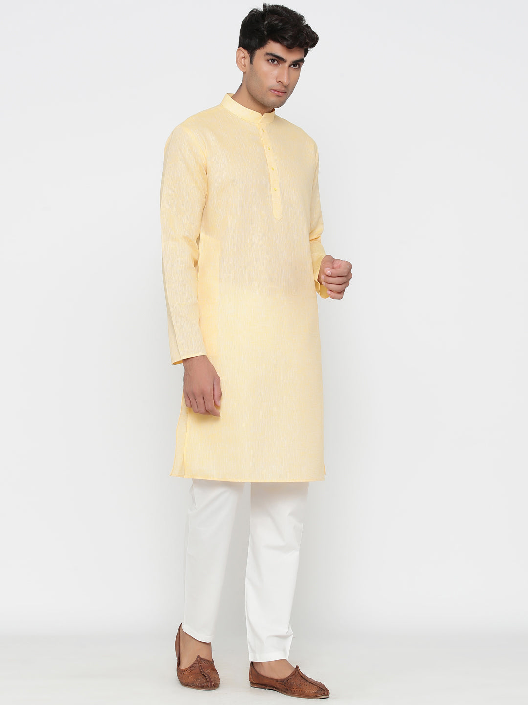 Kurta Color: Yellow|| Bottom Color: White Kurta Fabric: Cotton|| Bottom Fabric: Cotton Kurta Neck: Mandarian CollarTRUEKurta Work: Solid|| Bottom Work: Solid Type: Men Kurta With Pant Product Size: Kurta’s actual chest measurement is 6 inches more i.e. for 4 Sizes we give: M (38), L (40), XL(42), XXL (44) actual product chest will be M – 44,L – 46 XL – 48 XXL – 50 inches respectively Packaging Content: 1 Kurta & 1 Bottom Closure Type: Pull On Front Button Loop Wash Care: First Wash Dry Clean Recommended, Then Normal Machine Wash At Home. Fit Type: Regular/Comfort, Kurta Length: Knee Length Kurta Suitable For: Party Wear And Indian Traditional Occasions, Wedding Celebration Ethnic Clothing. Great As A Gift For Men: Everyone Uses Partywear On Numerous Occasions, Give This Kurta Pyjama Set As A Thoughtful Gift For Your Loved One’s Next Birthday, Anniversary, Wedding Or Any Occasion. This Is Why It Makes The Perfect Present For Your Dad, Husband, Son, Or Friend. Please Note: We Strive To Make Our Colours As Accurate As Possible; However, Due To Individual Monitor Settings, We Cannot Guarantee That The Color You See On Your Screen Is The Exact Color Of The Product. HIGH QUALITY MATERIAL: Lightweight And Breathable Material Gives This Kurta Pajama Set Soft, Comfortable Feel. Made From Cotton Fabric. The Kurta Is Lightweight With Vented Side. Designs Feature Modern And Innovative Details That Appeal To Everyone. Made in INDIA