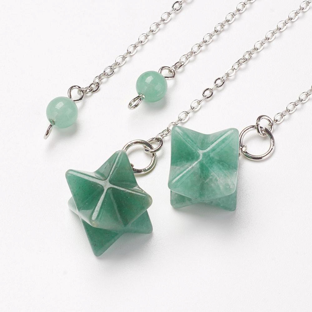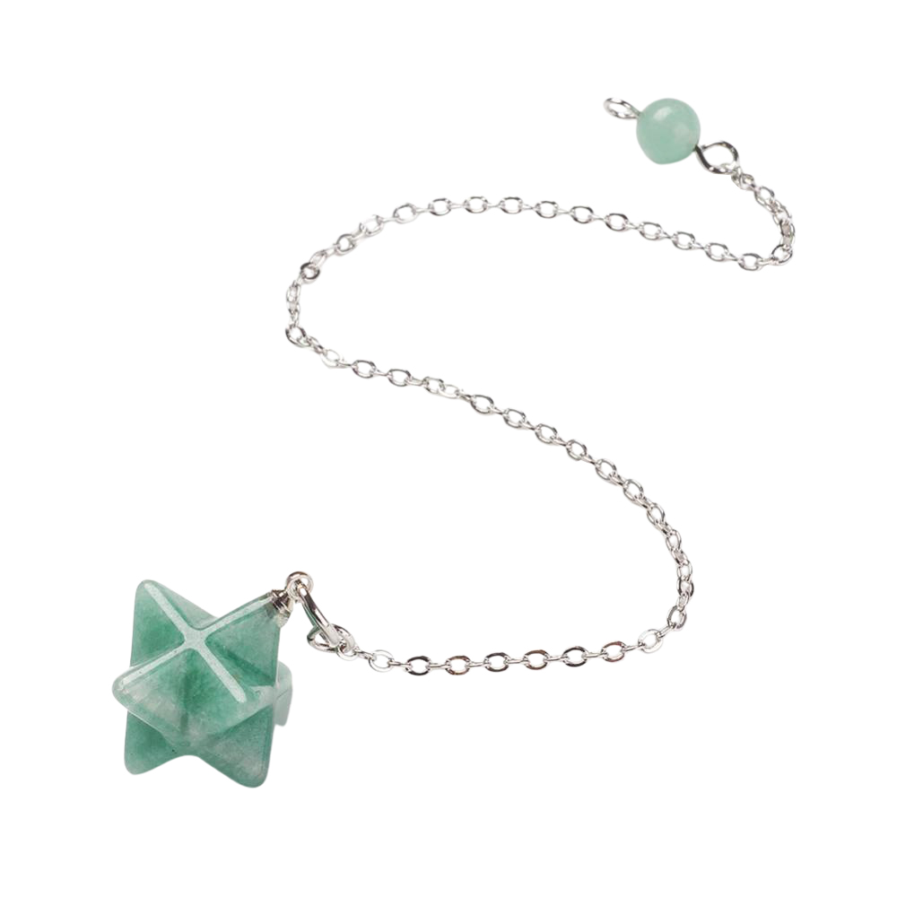Unlock the energy of the Merkaba symbol with our exquisite Merkaba Star Pendulum, crafted from a selection of unique gemstones and paired with a durable brass chain. The Merkaba, a sacred geometric shape, is known for its spiritual significance and ability to enhance meditation and healing practices. Ideal for dowsing, energy work, or simply as a beautiful spiritual accessory, this pendulum is meticulously crafted and easy to carry in its provided pouch. Each gemstone offers unique properties, making this pendulum both a practical tool and a personal talisman.