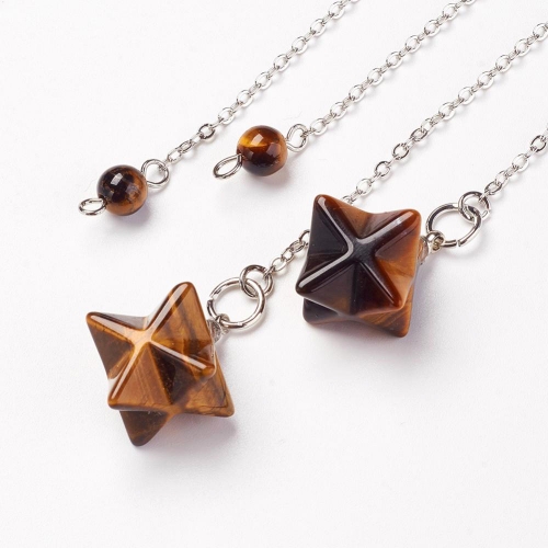 Unlock the energy of the Merkaba symbol with our exquisite Merkaba Star Pendulum, crafted from a selection of unique gemstones and paired with a durable brass chain. The Merkaba, a sacred geometric shape, is known for its spiritual significance and ability to enhance meditation and healing practices. Ideal for dowsing, energy work, or simply as a beautiful spiritual accessory, this pendulum is meticulously crafted and easy to carry in its provided pouch. Each gemstone offers unique properties, making this pendulum both a practical tool and a personal talisman.