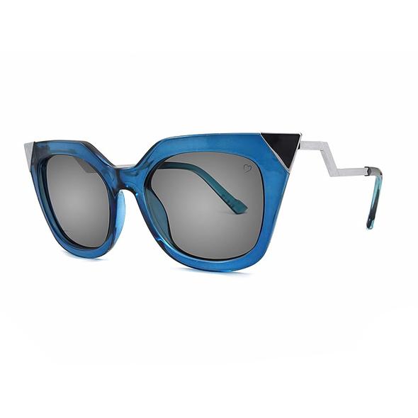 These angled cat eye sunglasses with metal tips on frame and angled metal temples come in crystal blue featuring the Ruby Rocks logo on both tips along with love heart logo on the left hand lens as worn. These lenses offer maximum UVA & UVB protection. Our Sunglasses come complete with a stylish white branded pouch which can be doubled up as a lens cleaner. Height: 3cm Depth: 4cm Width: 15.5cm