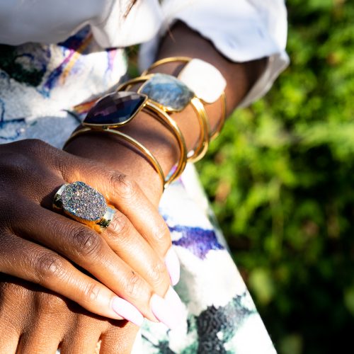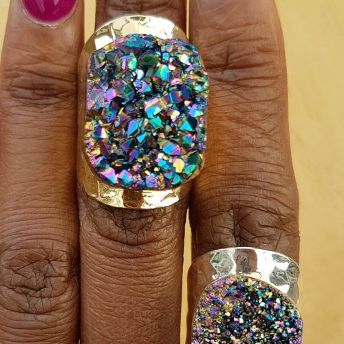 METALLIC RAINBOW DRUZY GOLD STATEMENT RING