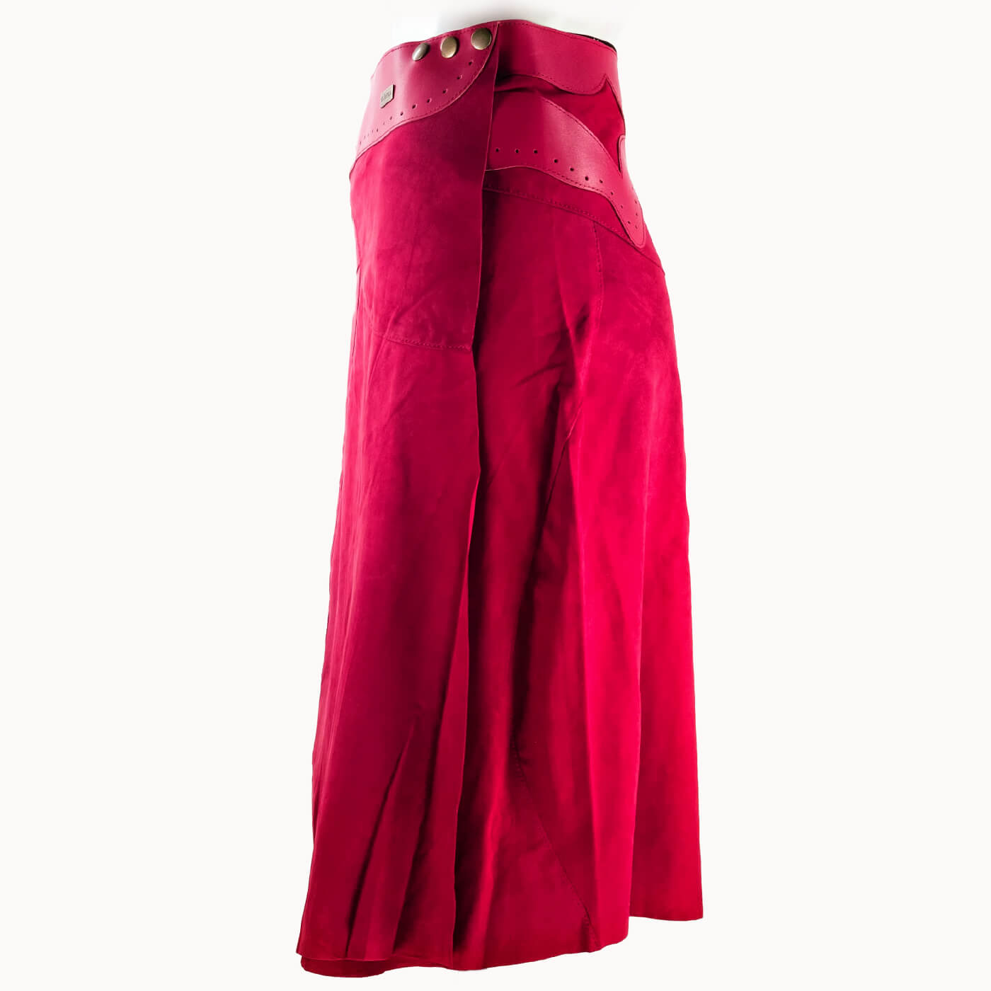 Gemaakt van boterzacht suède met een rundleren tailleband en passend voor maat 42 t/m48 door het slimme gebruik van drukknopen. Net zo geschikt voor werk als vrije tijd.