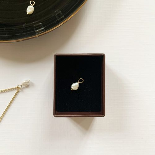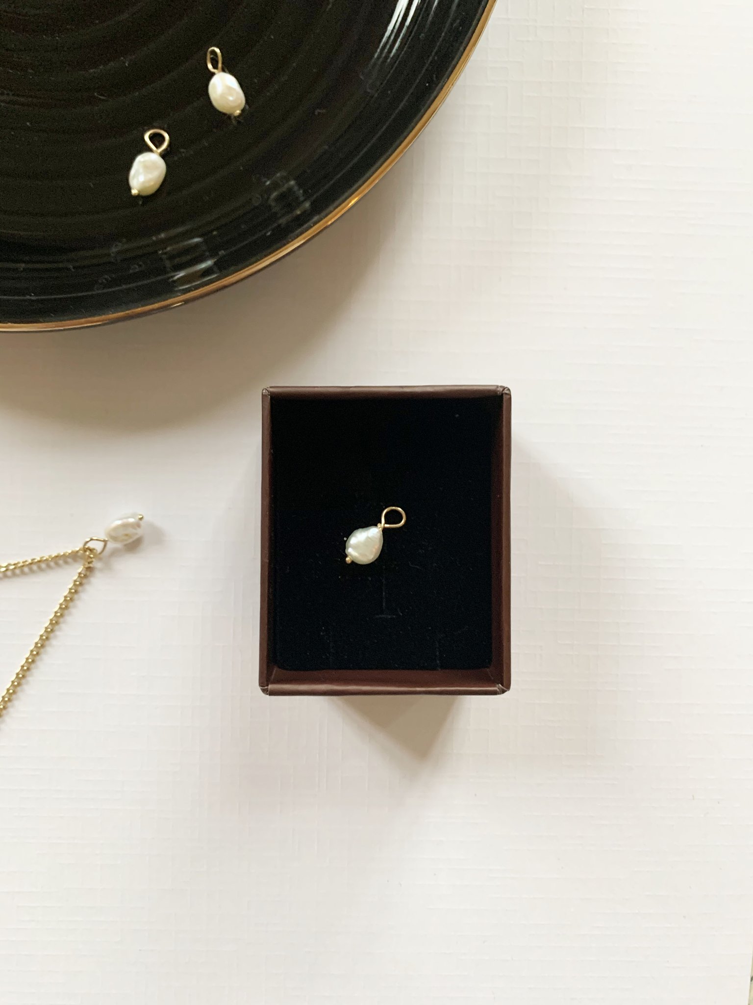 A little luxury for everyday! Baby Baroque Pearl charm with 14K gold handle. Can be worn with chain necklaces and bracelets. Best to layer it with evil eyes.